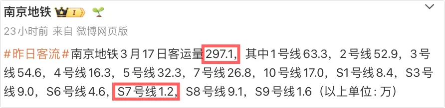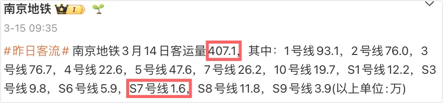 >南京地铁频超400万,S7为何垫底