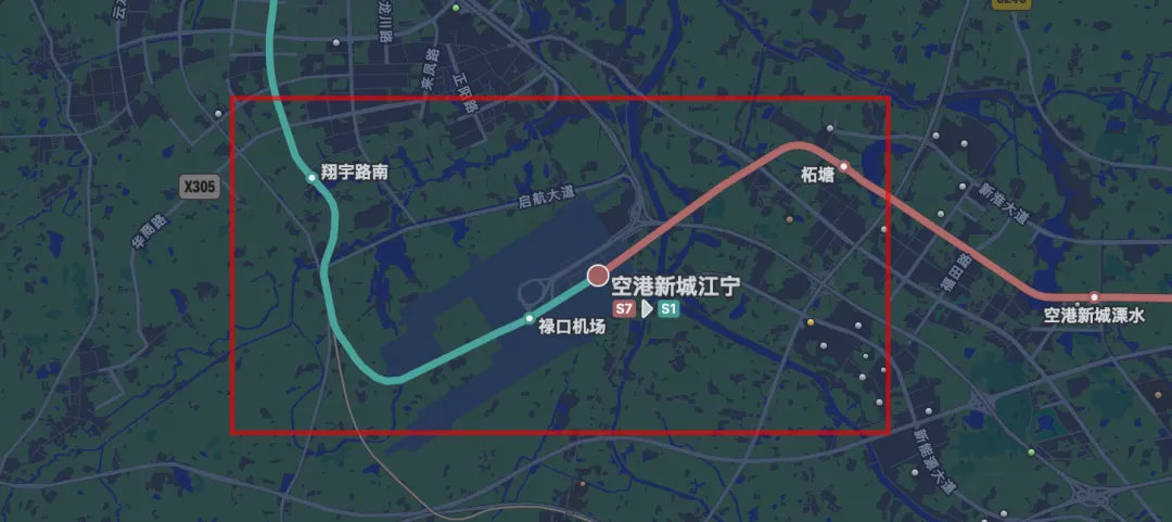 我个人分析其实倒也没有那么复杂,首先地铁S7的线路走向确实有些绕,比如S7柘塘站到S1翔宇路南站,兜了一圈南北纬度上实际没有变化,相当与去机场饶了一圈,还在原地。