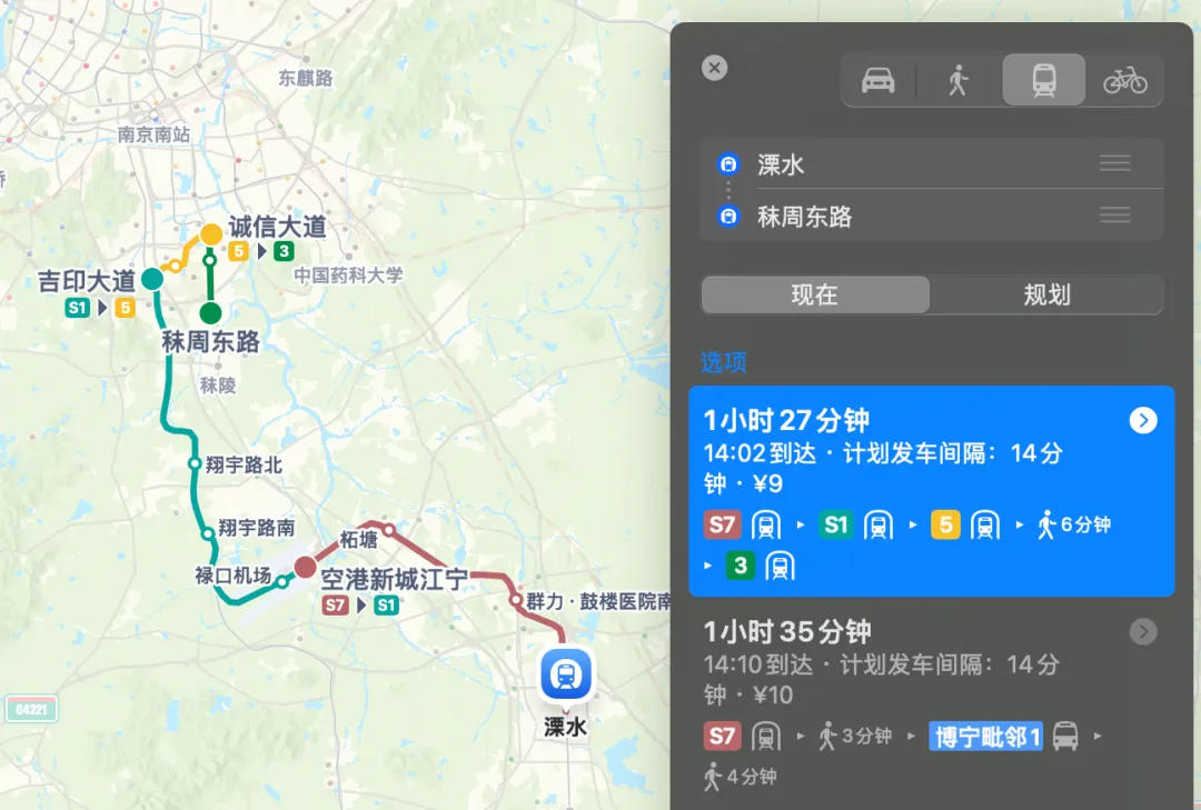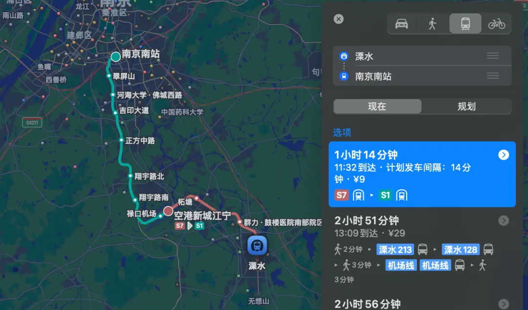 所以对于长期需要在溧水和南京市区通勤的朋友来说,高铁和大巴反而是不错的选择,这在一定程度上也分流了一部分地铁S7的客流。