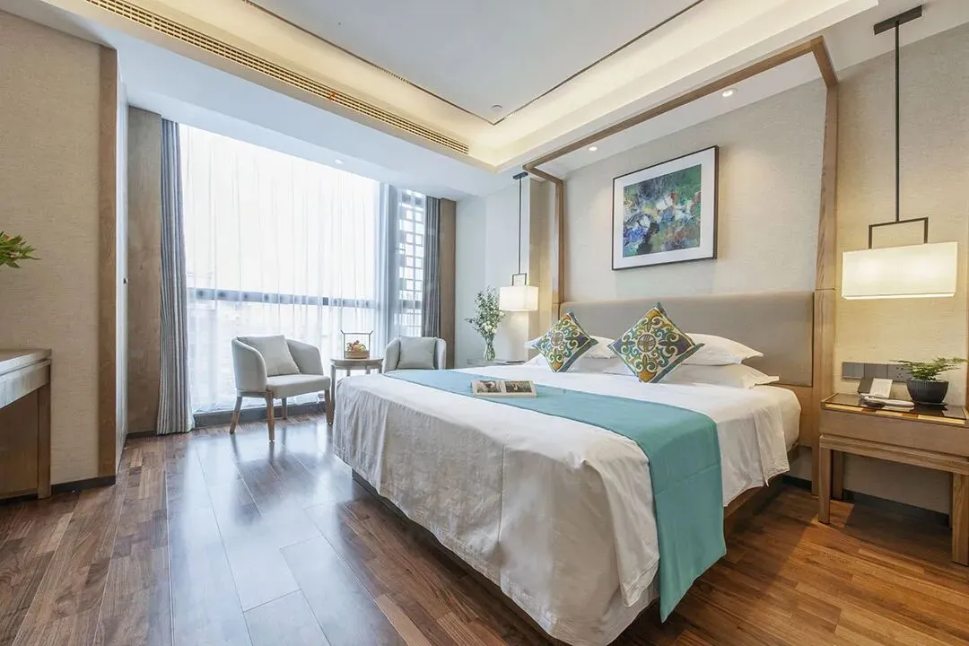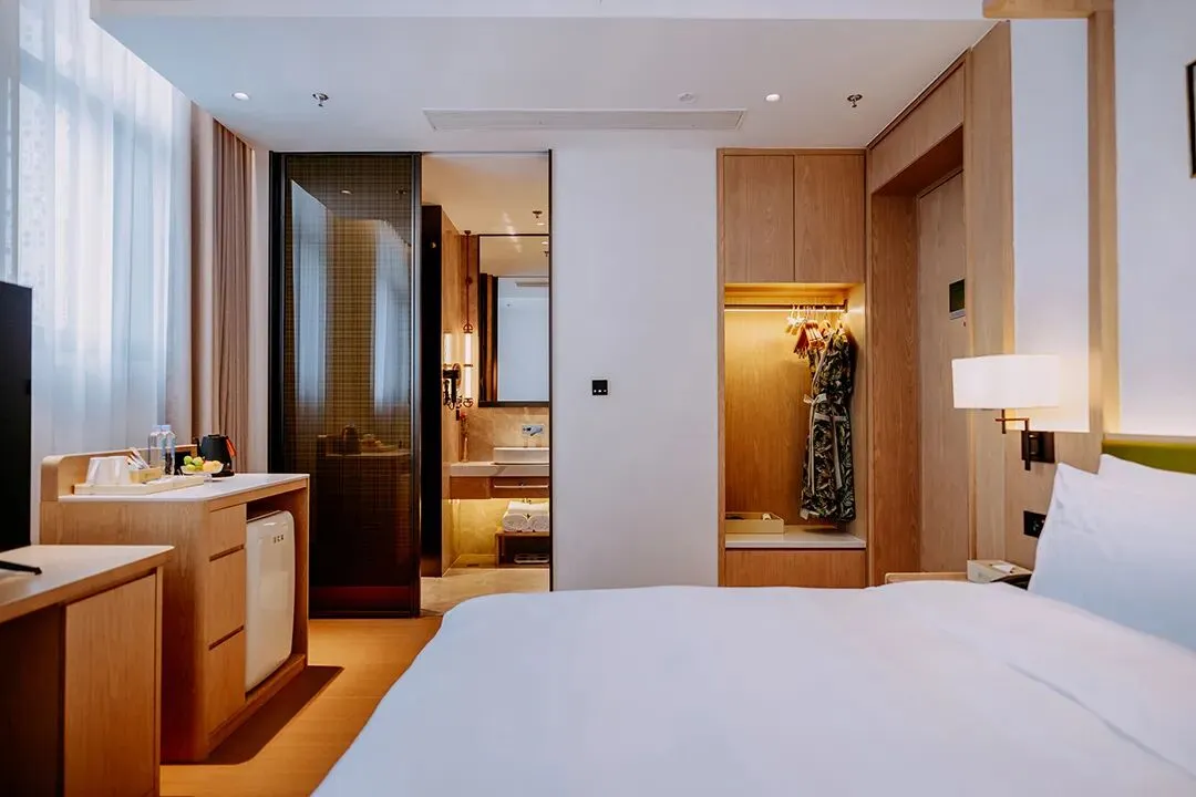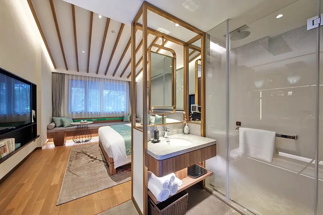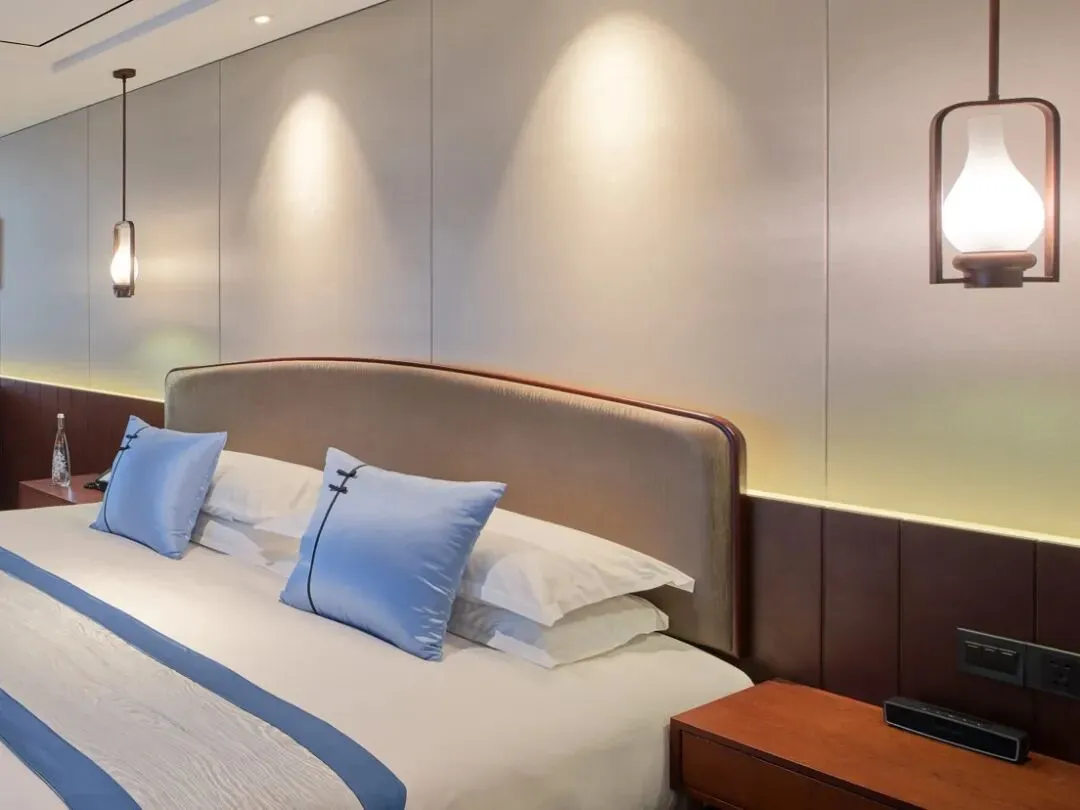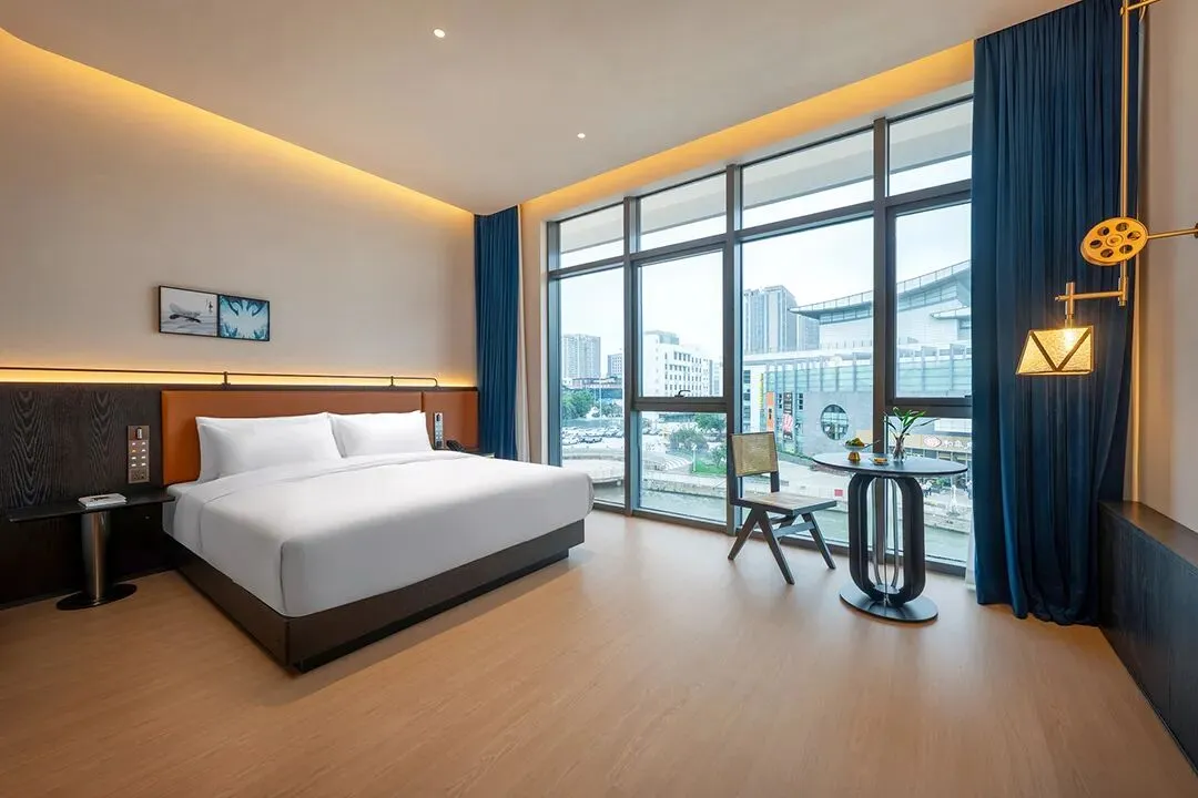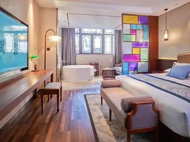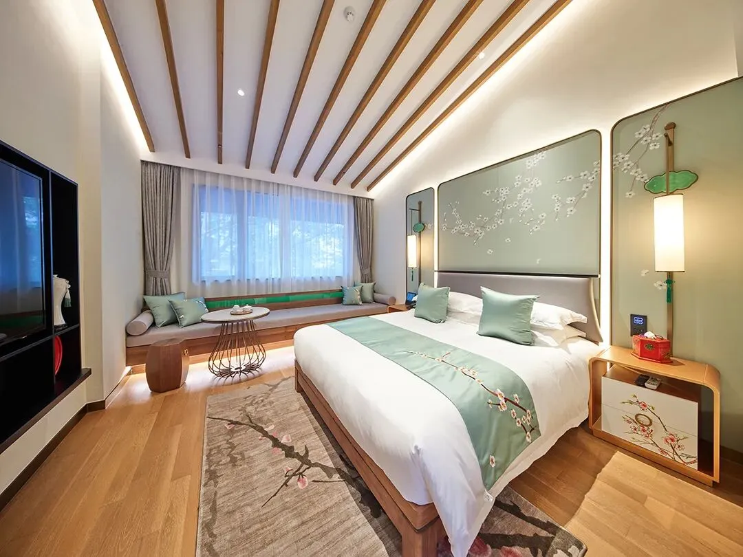 客房内的设计也很别致,设计师通过融合简约设计与东方雅趣,打造舒适而富有文化气息的空间。雕花窗棂框住飞檐、玉兰与水巷秀色,宛如流动的水墨画,让人沉浸于江南诗意之中。
