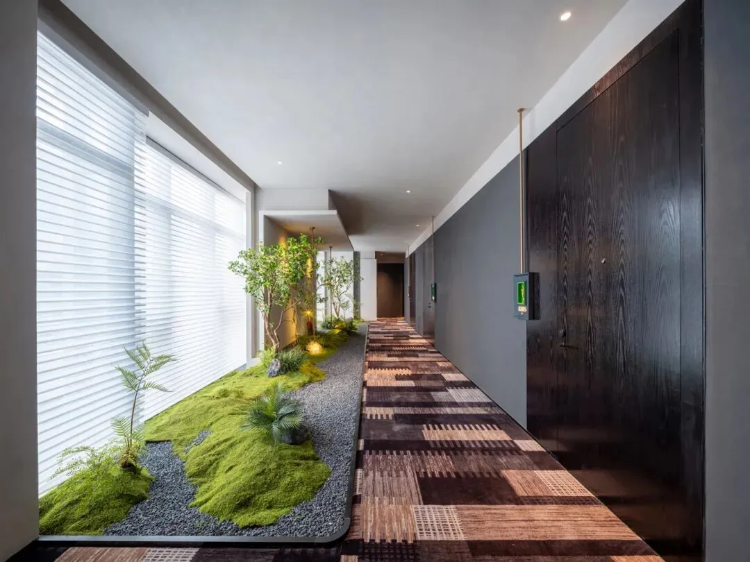 穿行其中,公区还增加了绿植装饰,让人住进来,也能从视觉上享受到自然魅力。