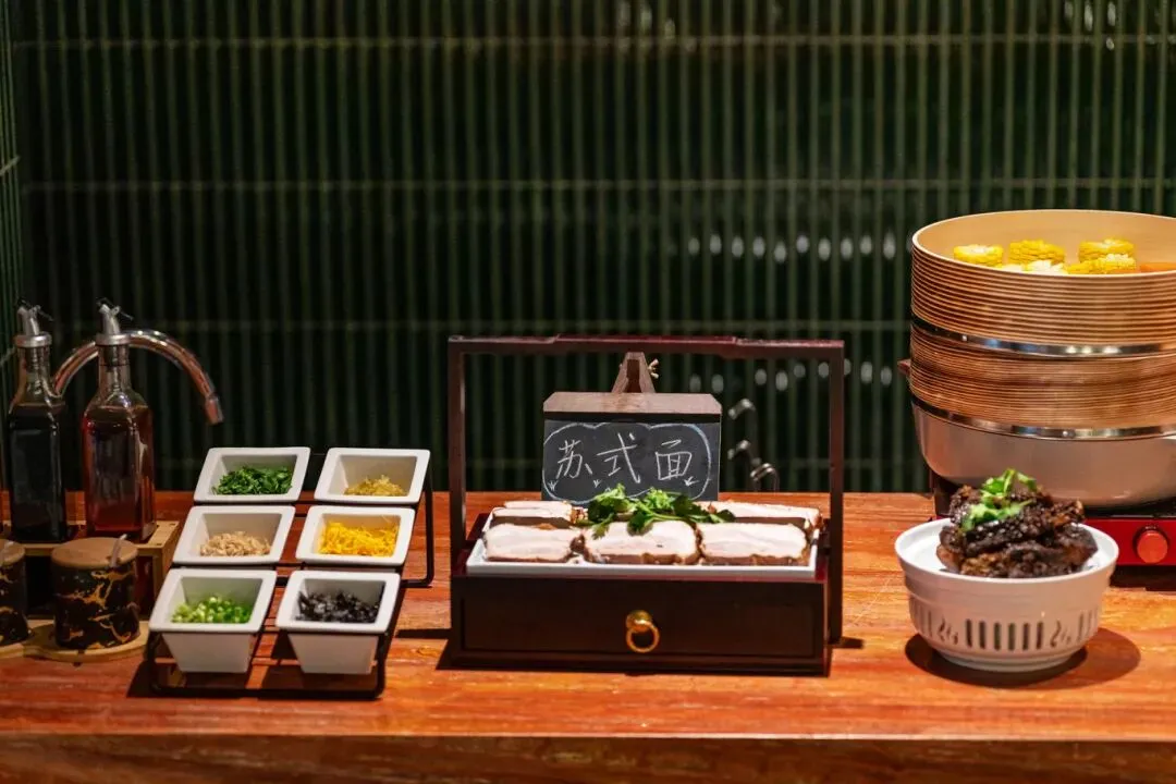 餐厅提供优雅下午茶与创意融合西餐晚餐。早餐也在此享用,中式为主,现做的馄饨和生煎包很受欢迎。