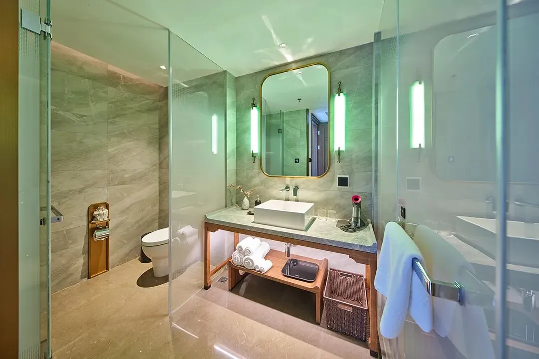 与国际知名品牌金可儿合作开发的“君亭之梦”,让你安然入眠, 卫生间内设有热带雨林花洒及充足水压,为你提供了“立体浴缸”体验。客房内还配备胶囊咖啡机、茶具和入住水果,浓浓的咖啡香、茶香与水果的清新相拥,自然提神。