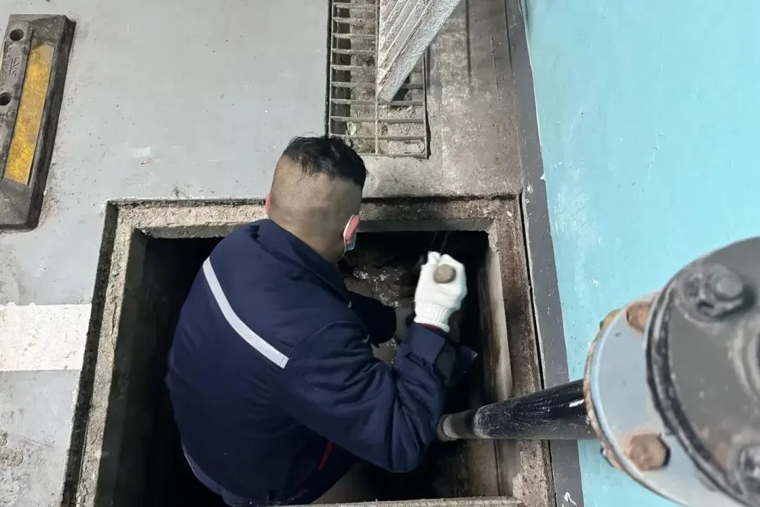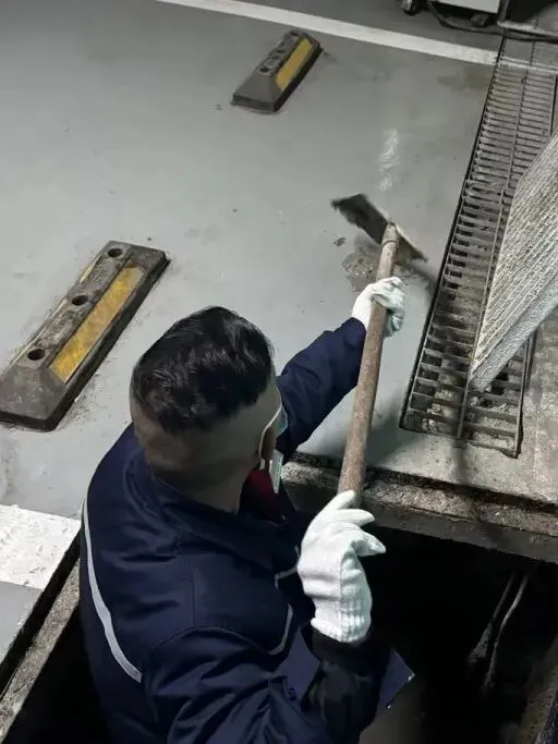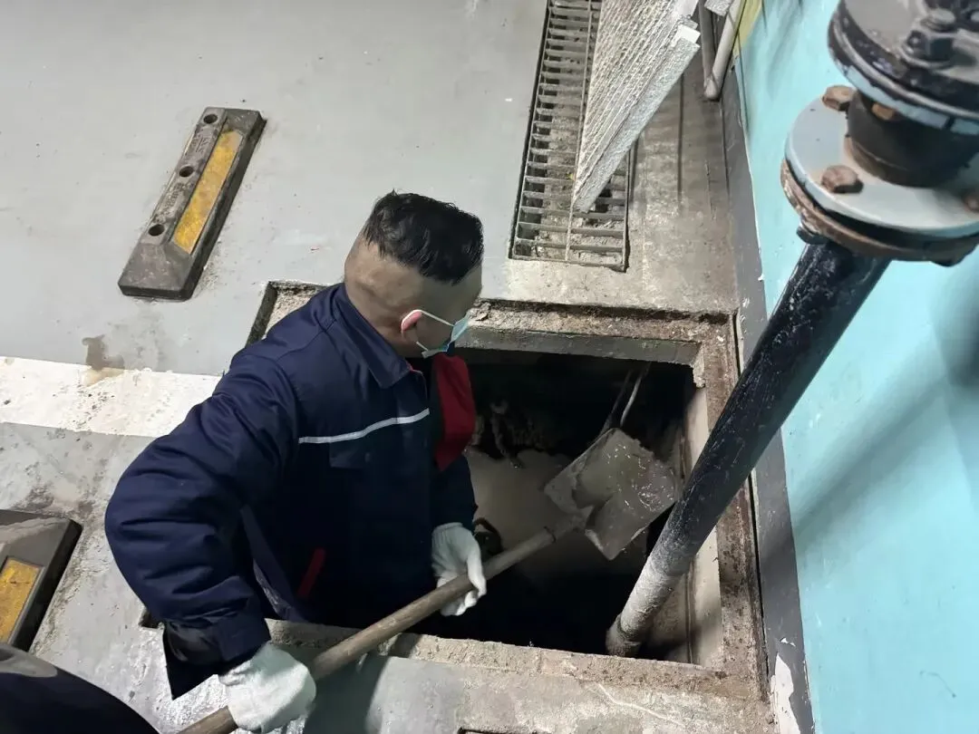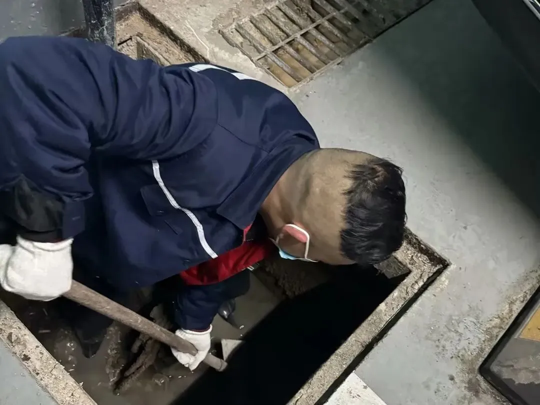 作业现场,维修师傅们身着防水服,使用铁铲、捞网等工具,俯身细致清掏井内淤泥、杂物。面对井下狭小潮湿的环境,大家不怕脏累,认真清理、反复冲洗,确保井内无淤积、管道无堵塞。