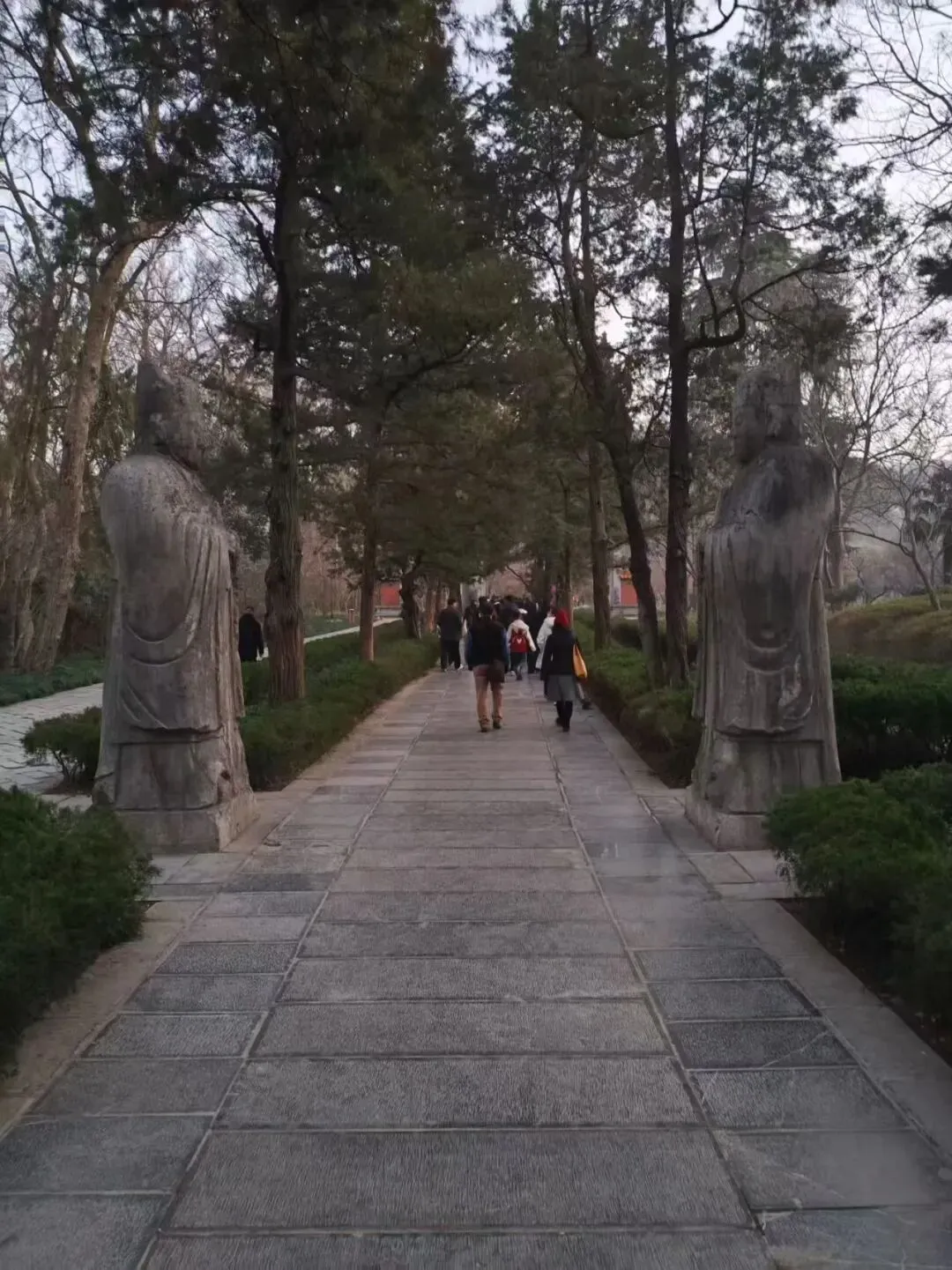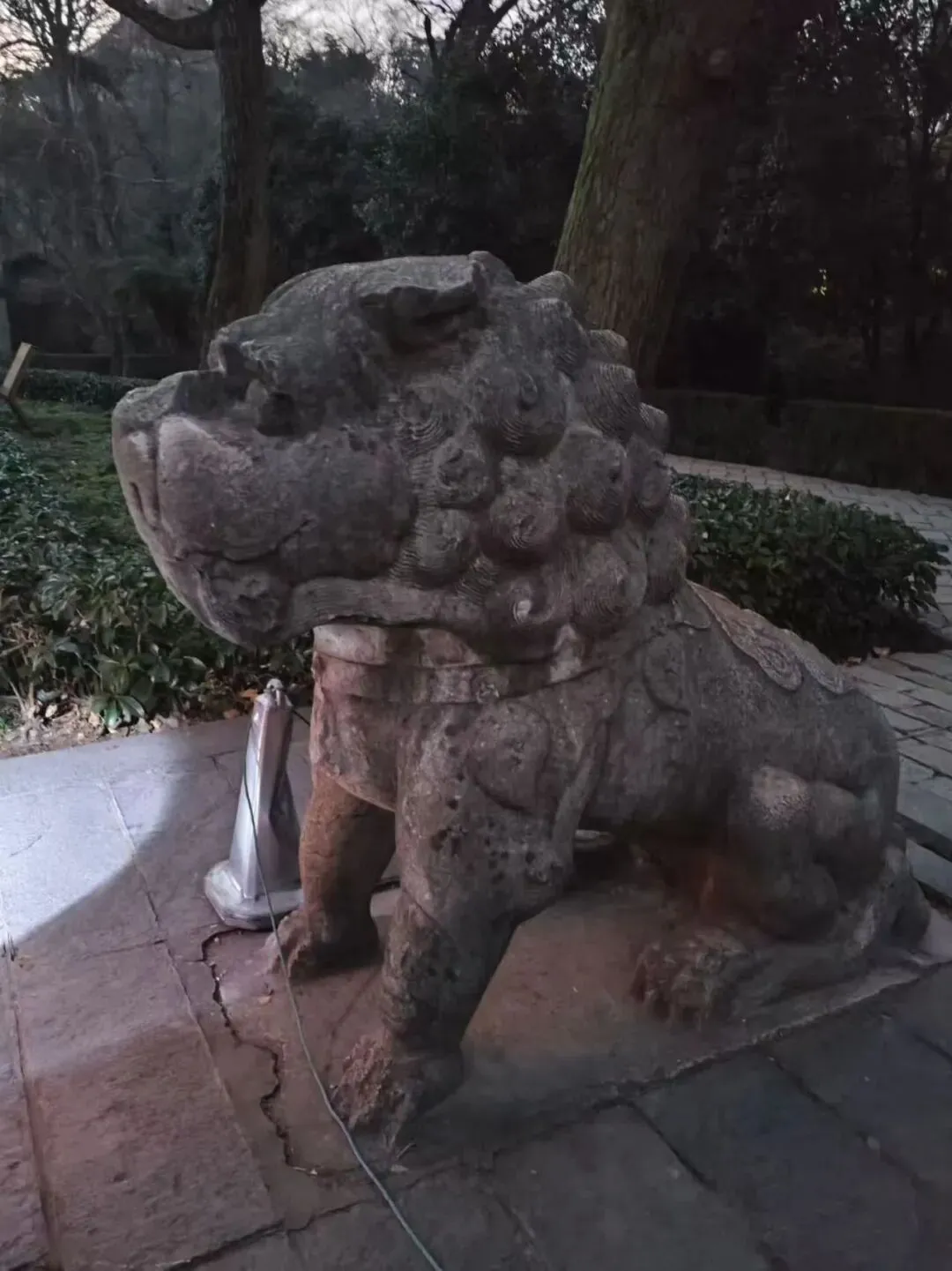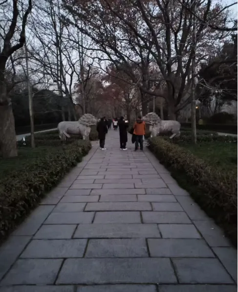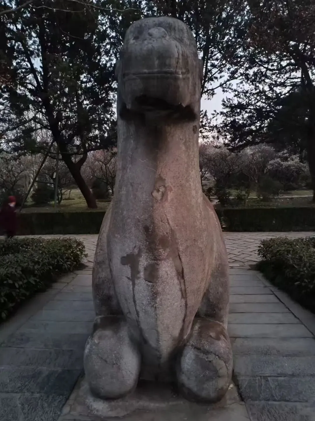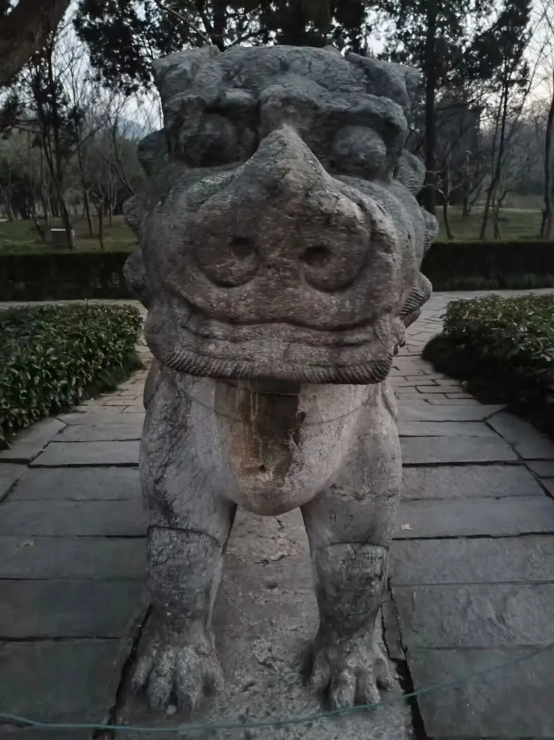 615 米的石象路,是明孝陵最具诗意的段落。12 对石兽分 6 种排列,狮子、獬豸、骆驼、象、麒麟、马,或立或卧,用整块巨石圆雕而成,线条粗犷却神韵十足。神道并非直线,而是蜿蜒曲折如北斗七星,既顺应了钟山的地形,也暗含 “魂归北斗” 的古代信仰。走过石象路,翁仲路的 4 对文臣武将石像接踵而至,身着盔甲或蟒袍,虽历经岁月侵蚀,仍能让人感受到明初的仪仗威严与石刻艺术的高超。
