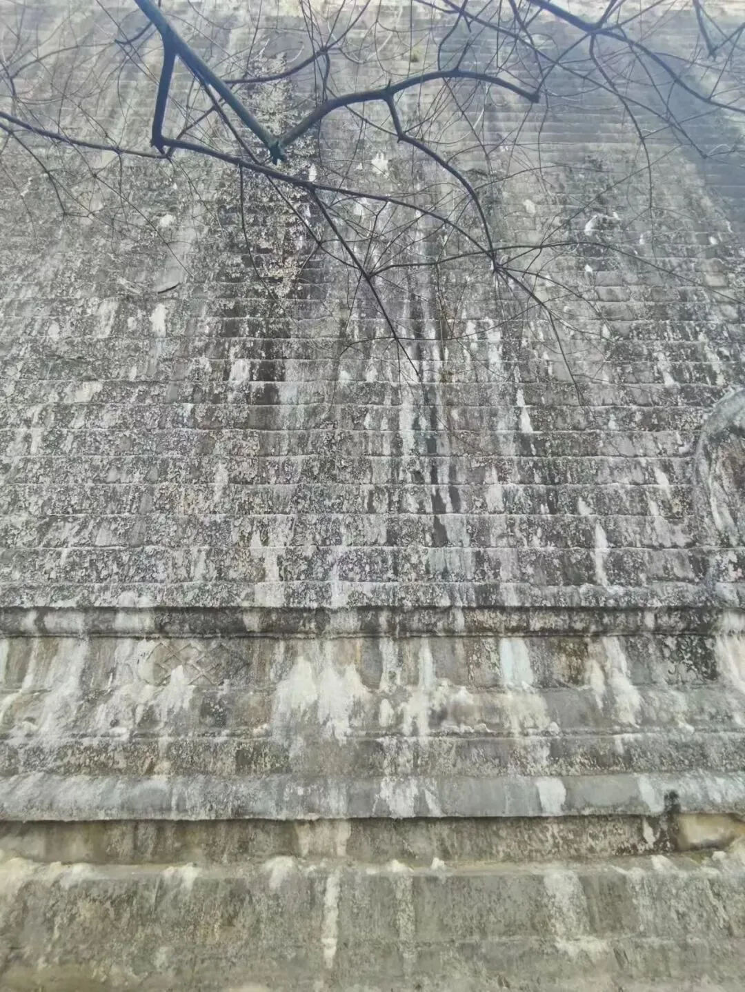方城明楼城墙“石钟乳”奇观:建造时用糯米汁混合石灰作粘合剂,具有较强的粘结性,其中的石灰成分(碳酸钙)在长期接触雨水后,逐渐溶解并随水从墙体缝隙中渗出形成石钟乳!