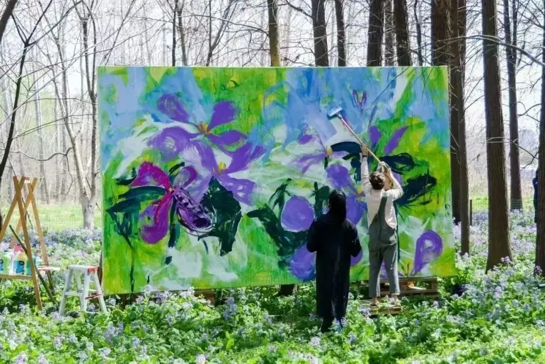 去年,捷克艺术家Jakub Kukla、南艺油画系硕士生卢泽睿,以池杉林、二月兰花海为灵感来源,现场创作“巨幅画作”。这场“森林美术馆”户外艺术活动,吸引了超2万人次的驻足见证。