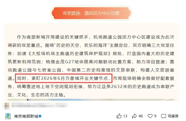 3月16日官方正式回复:南部新城金陵万象城并未停工,预计2027年下半年开业。相比此前“2026年6月开业”的口径,整整推迟至少一年。