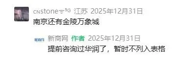 其实早在2025年底,商业自媒体盘点2026筹开项目时,就未将金陵万象城列入,给出的理由是“提前咨询过华润了,暂时不列入表格”。由此可以合理推测,金陵万象城2026年开业概率较低,如今也被官方证实。