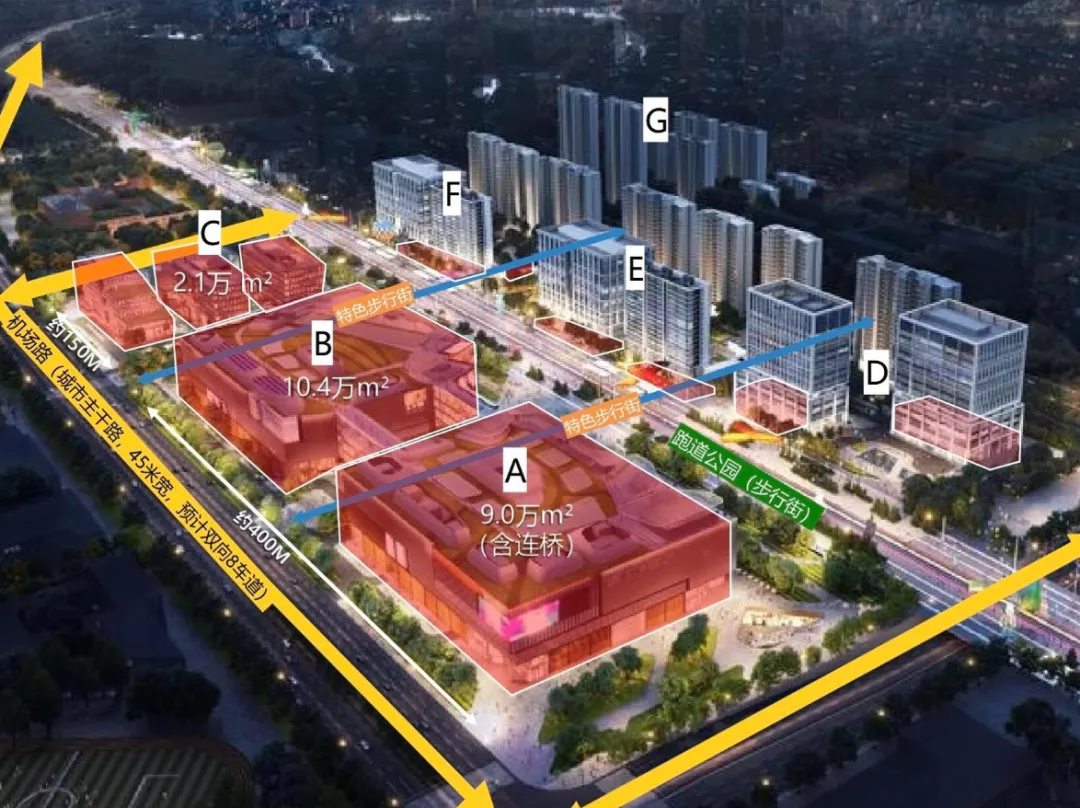 机场三路社区中心地块,北临佳营路,西临汇康路,东临柴园北路,南临汇景家园小区,总建筑面积约6.1万平方米。建成后将涵盖社区卫生服务中心、社区商业服务设施、派出所、居家养老、育儿园、街政管理中心等功能体。其中,机场三路社区中心C地块(街道办公与社区商业)将于2026年率先竣工投用。