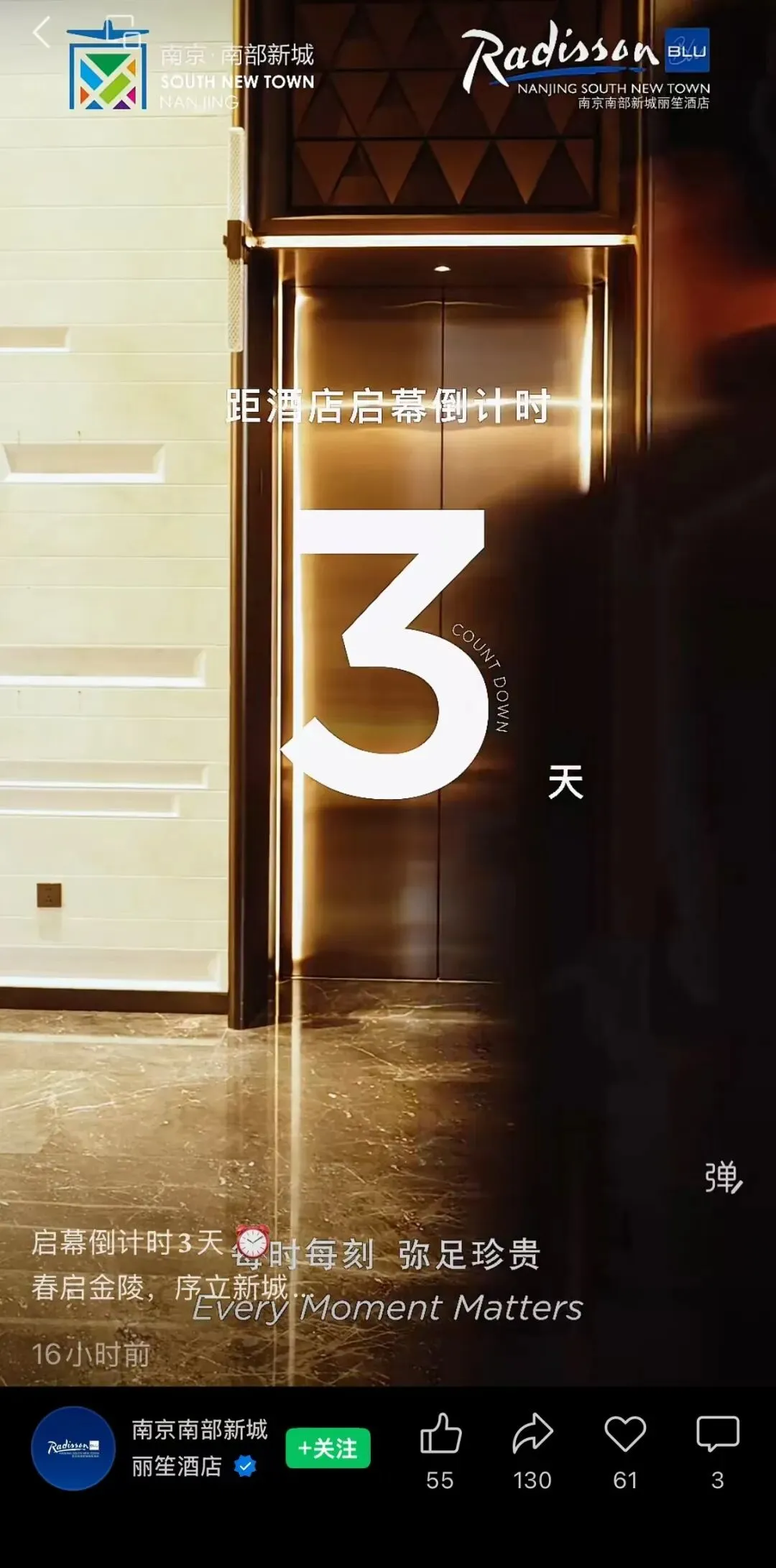 3月17日晚,南部新城丽笙酒店(Radisson Blu)官方视频号官宣启幕倒计时3天,确认该酒店将于3月20日本周五正式开业,为南部新城高端配套再添重磅砝码。