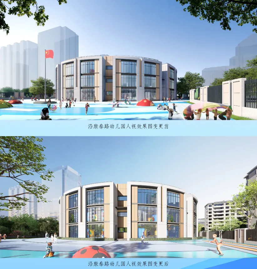 据悉,幼儿园经过规划优化后颜值升级,门前绿化带改为圆润曲线,大门位置调整、建筑整体向东平移,地库出口移至南侧,同时优化班级活动场地及消防登高场地布局,进一步提升使用安全性与舒适性。