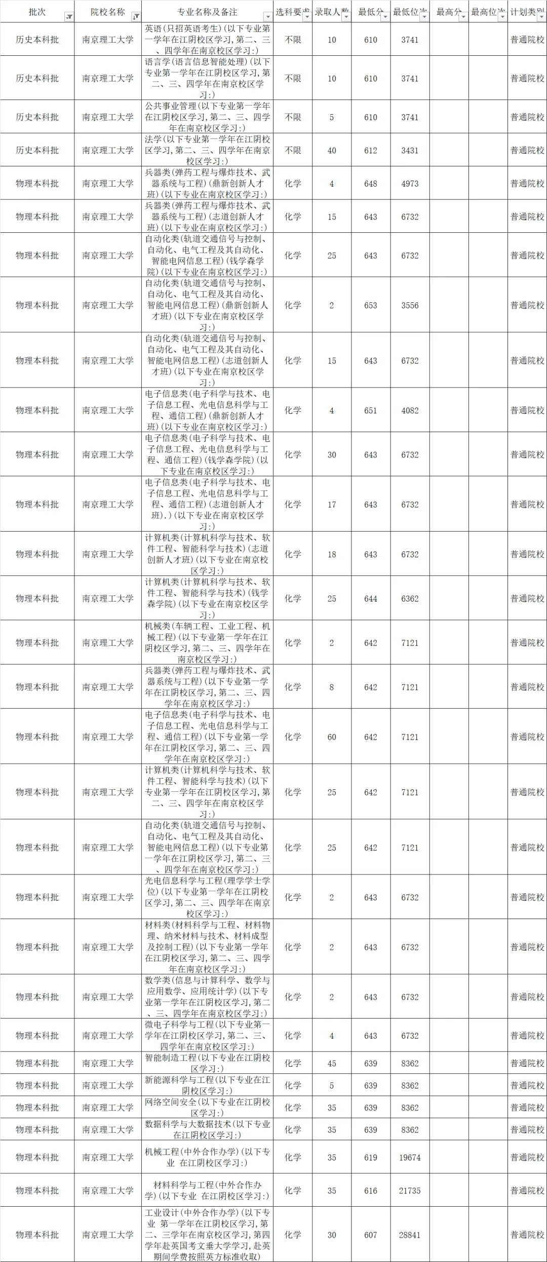 2、南京理工大学2022年录取情况概括
