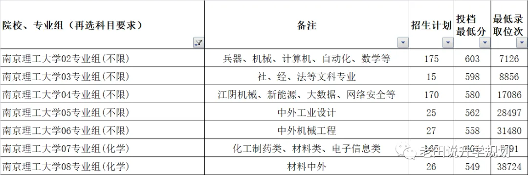 1、2021年南京理工大学专业组设置及录取简况