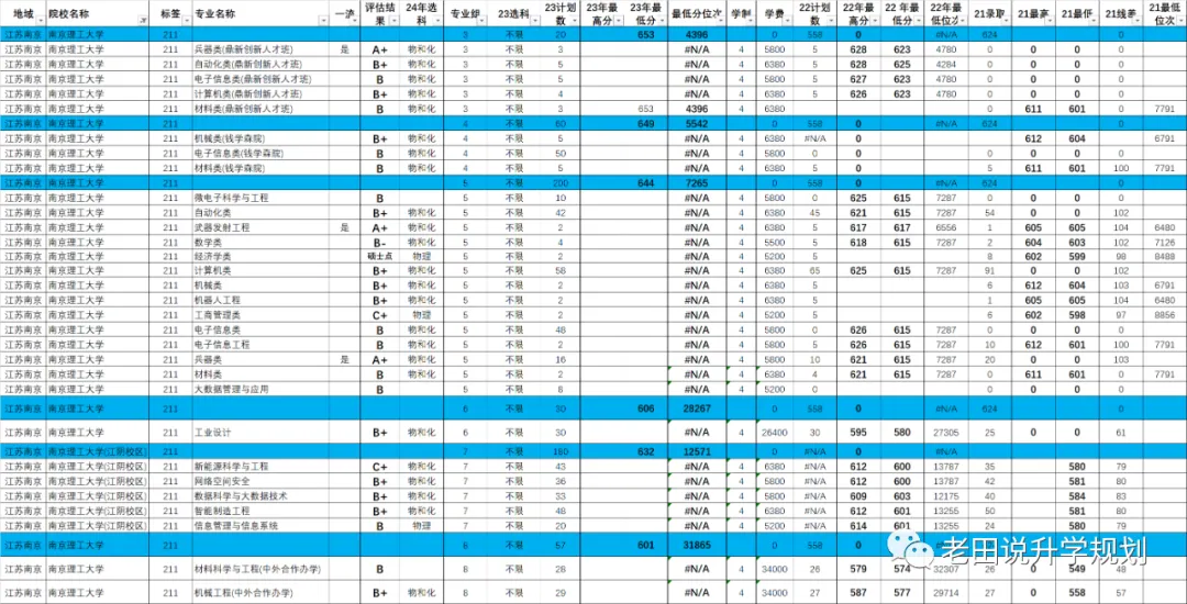 3、南京理工大学2021年至2023年在苏录取数据