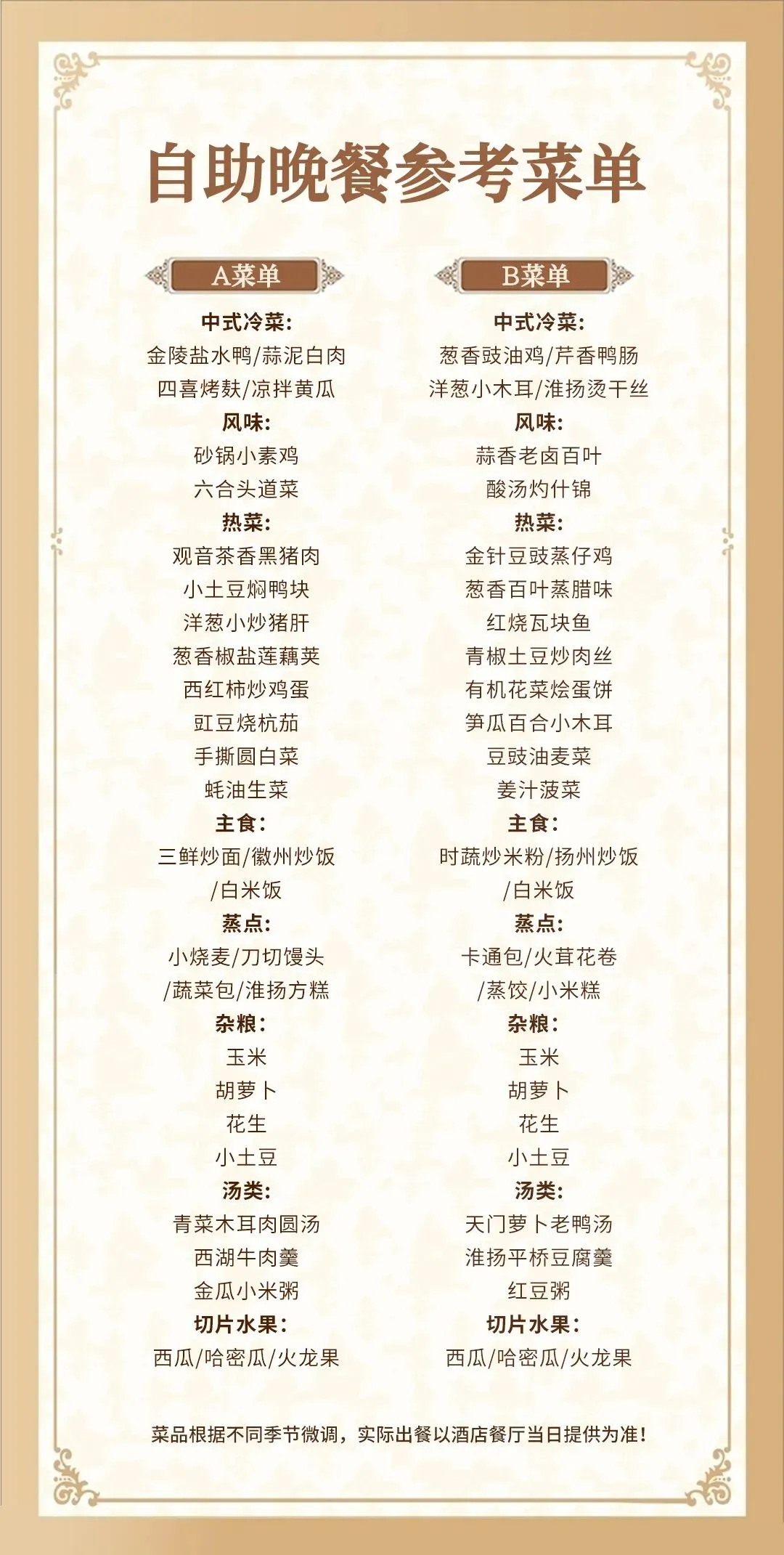 5.菜品以实际到店为准,严禁带熟食进入餐厅,严禁携带宠物进入酒店;