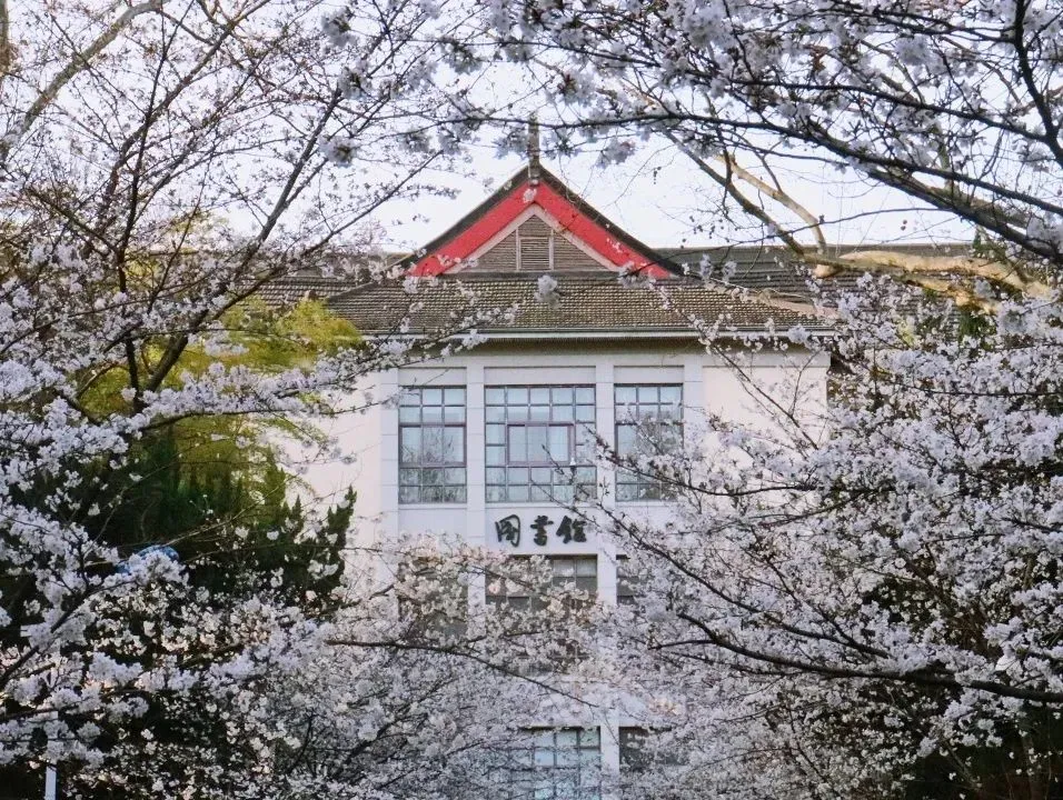 每到早春三月,在老图书馆到生物科技大楼全长215米的樱花大道两侧,近百株樱花争相盛放,雪白了枝头,绚烂了碧空。