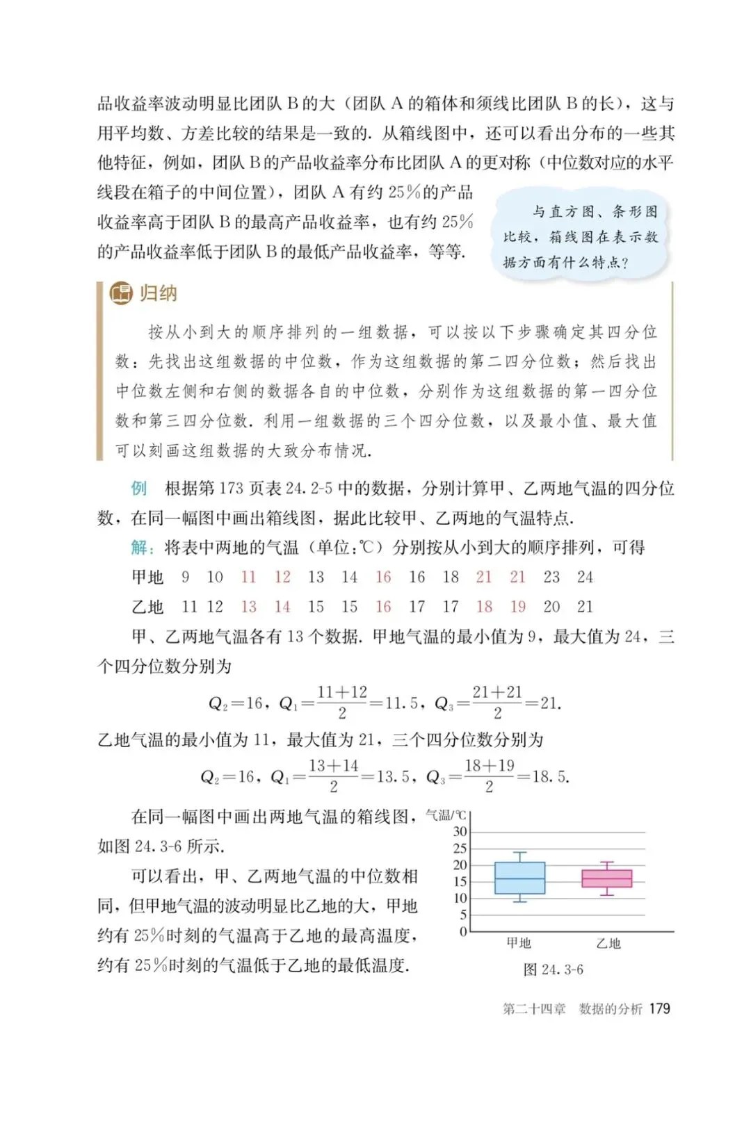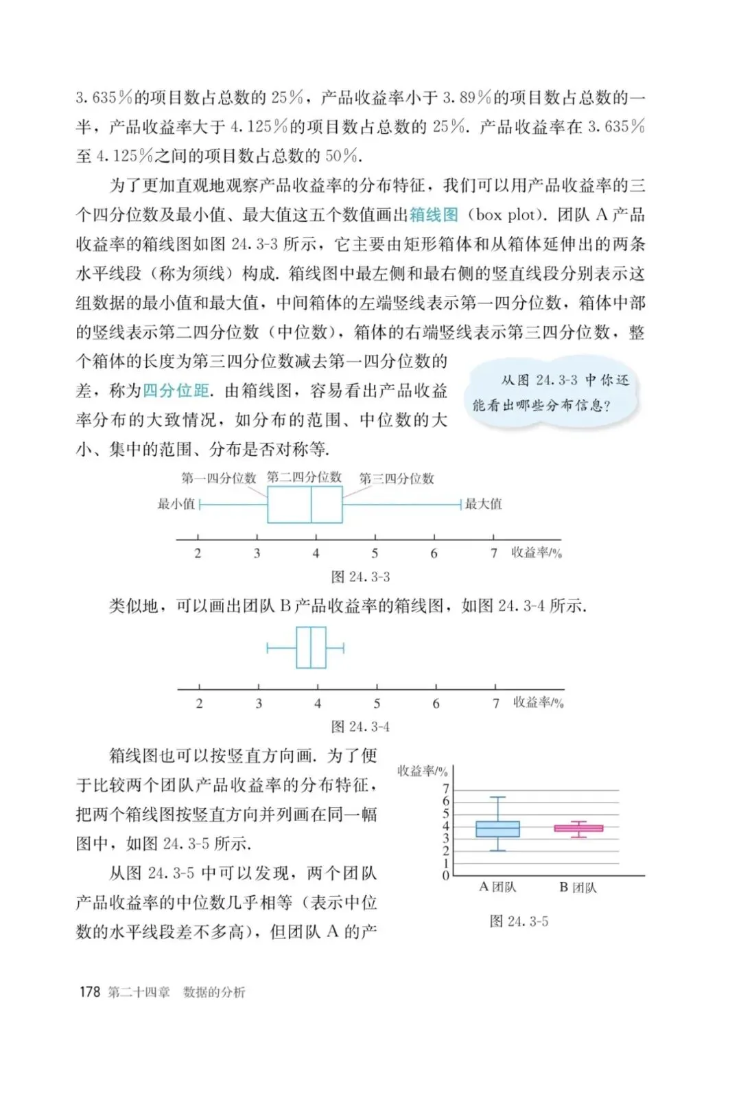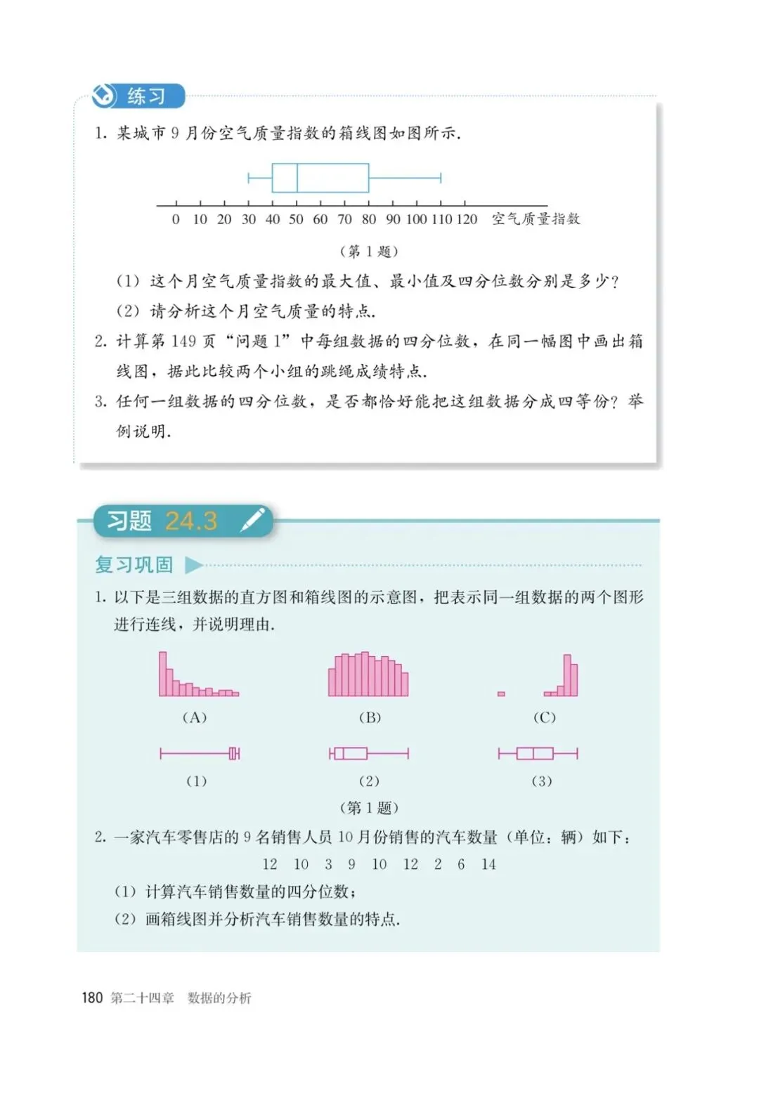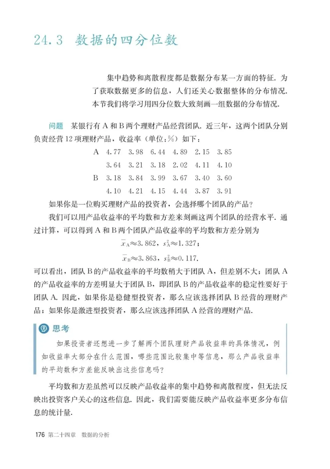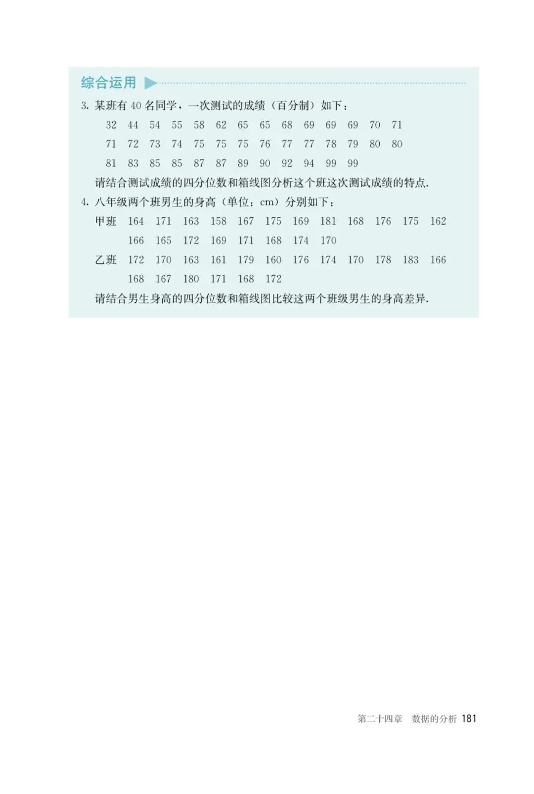 这里,卜老师把新版人教版八下中的《数据的四分位数》给大家参考——