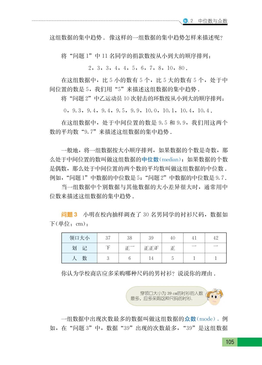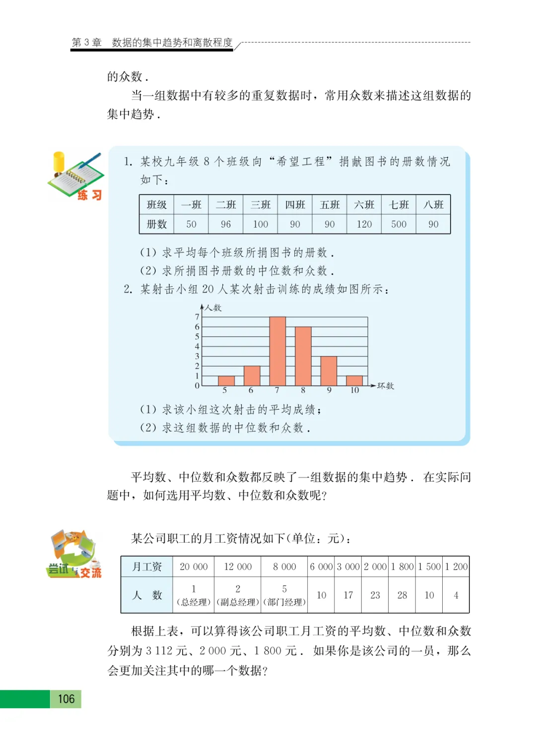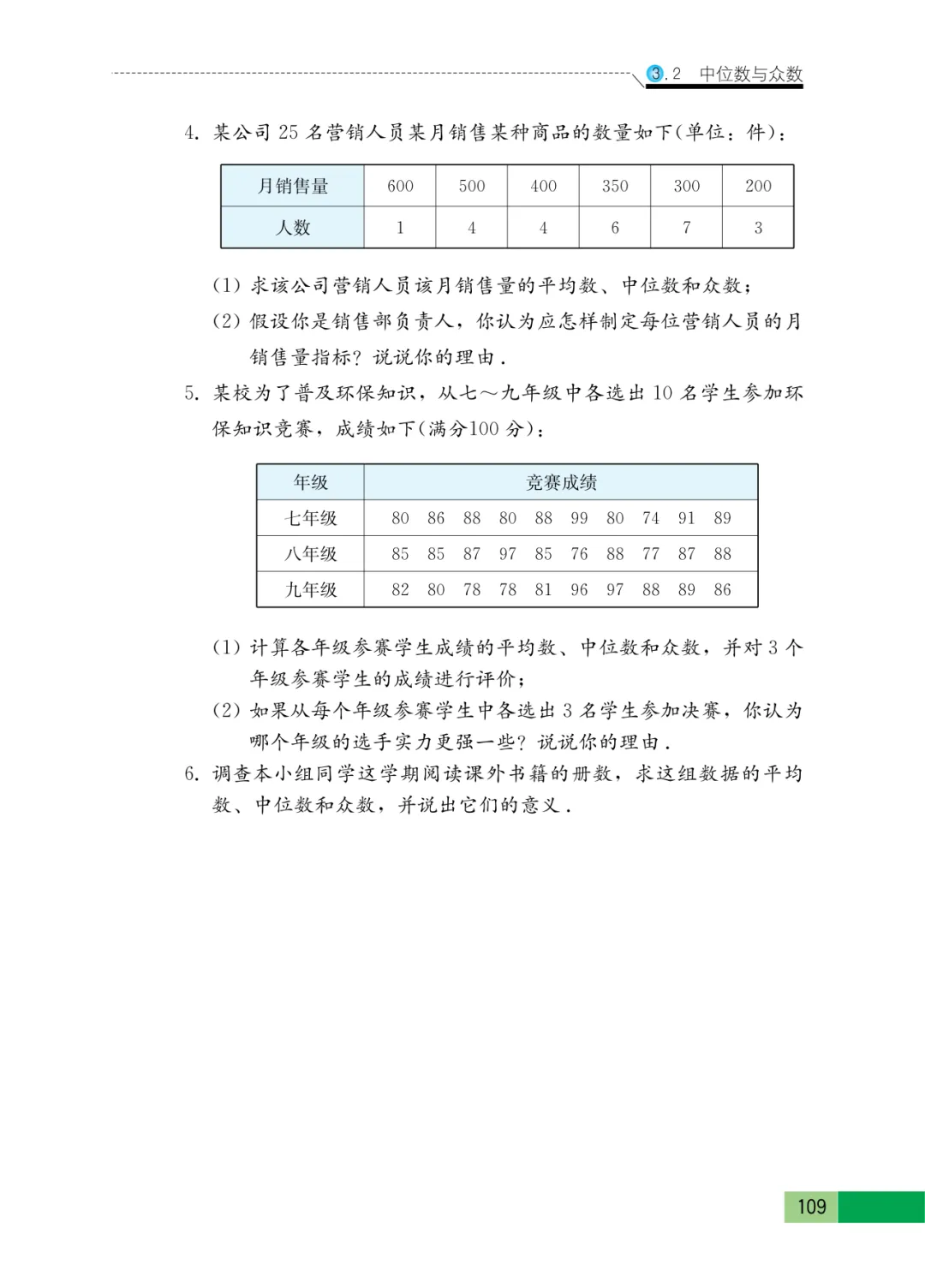 理解平均数、中位数、众数的意义,能计算中位数、众数、加权平均数,知道它们描述数据集中趋势。