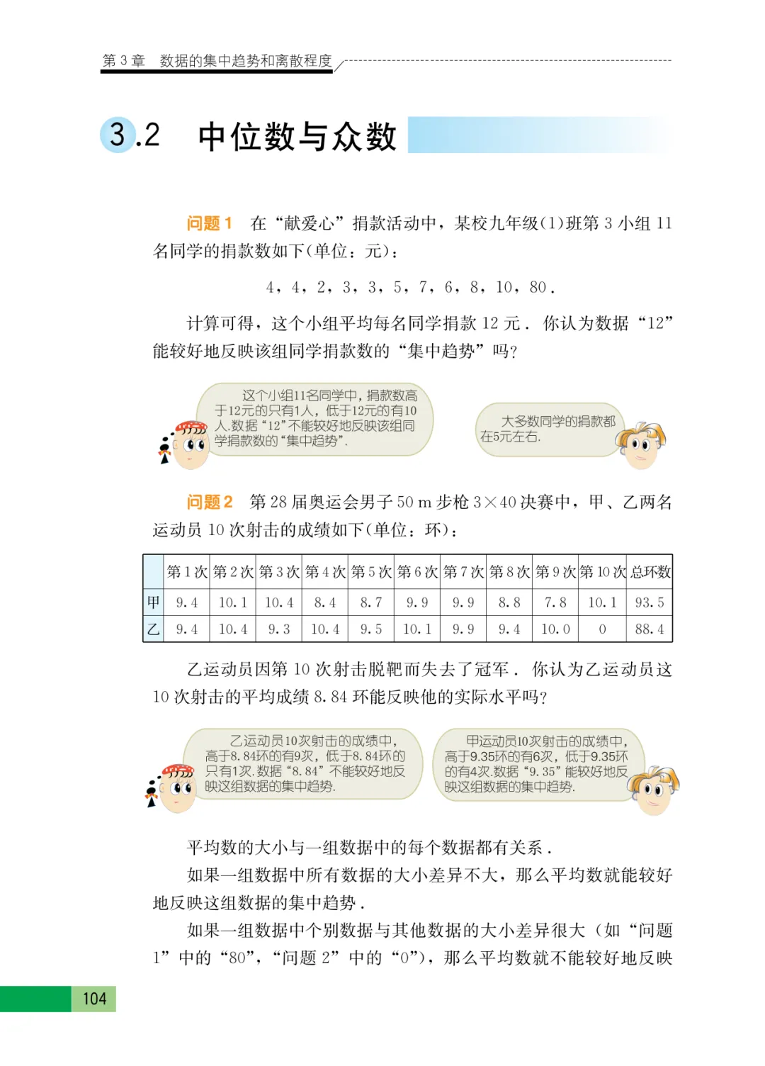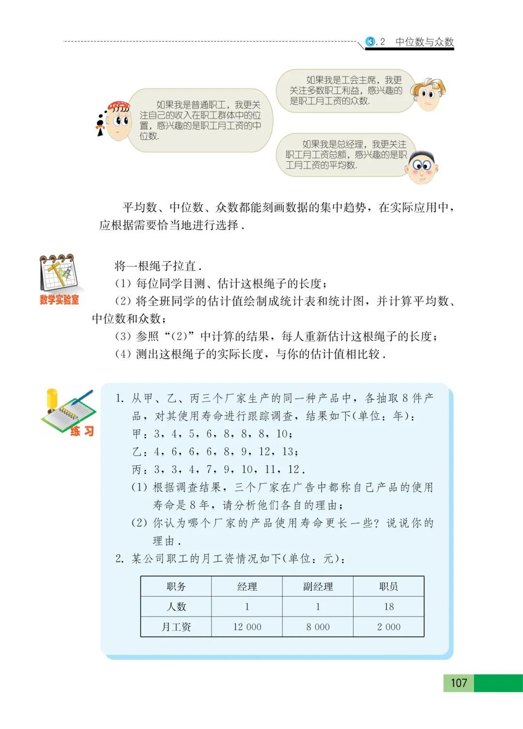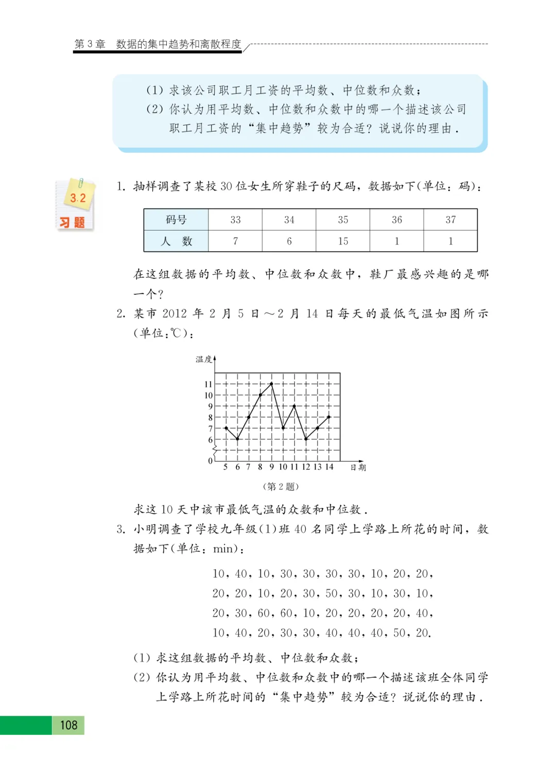 理解平均数、中位数、众数的意义,能计算中位数、众数、加权平均数,知道它们描述数据集中趋势。