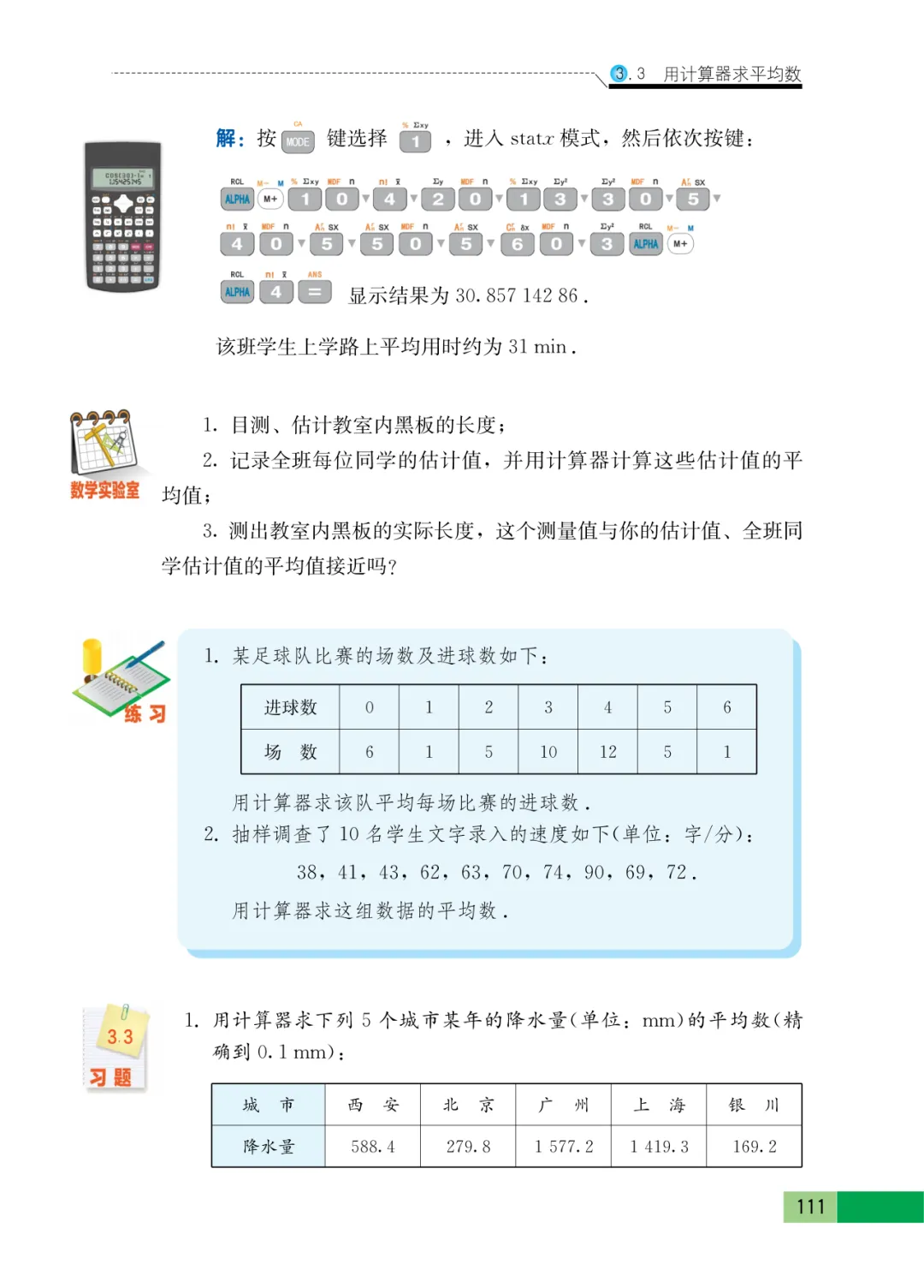 经历收集、整理、描述、分析数据的全过程,能用计算器处理复杂数据。