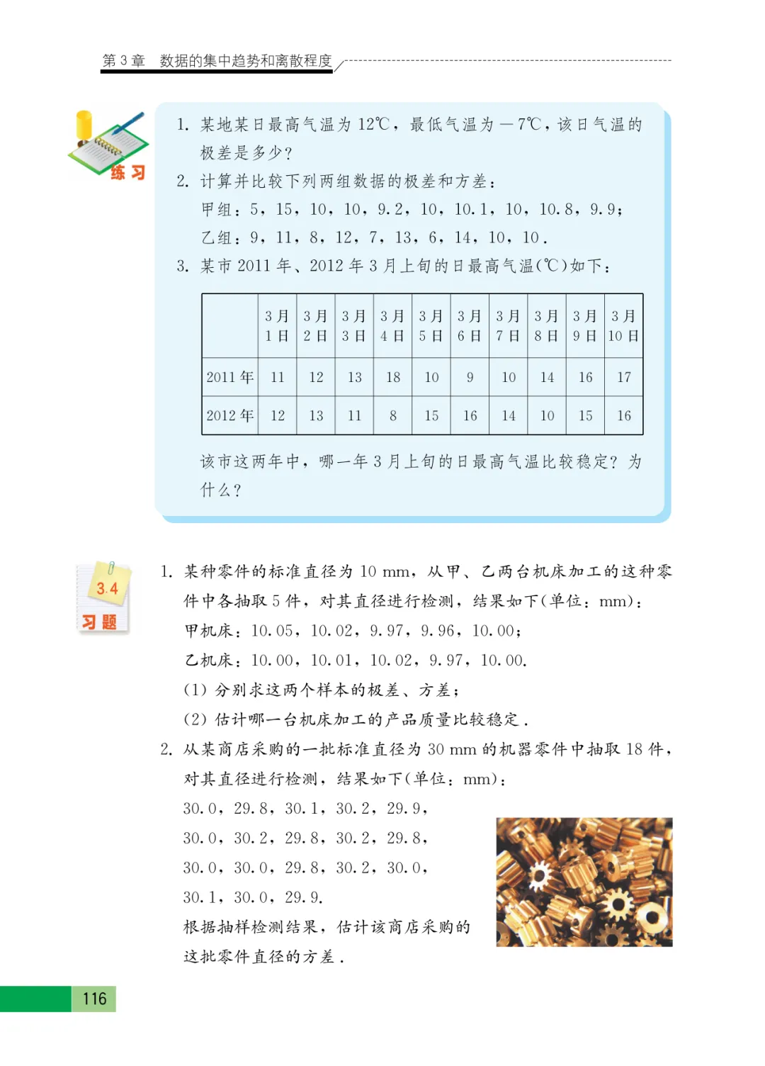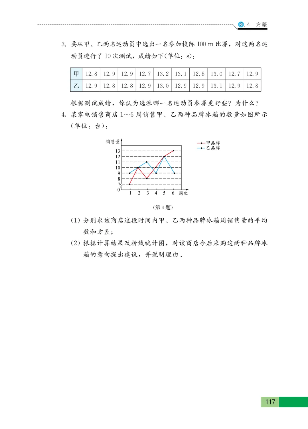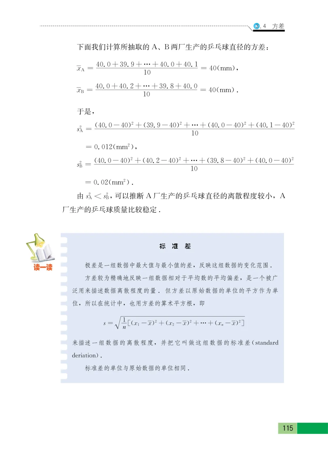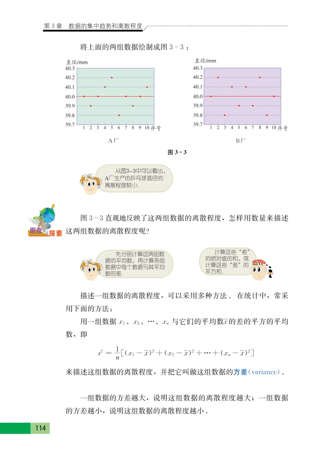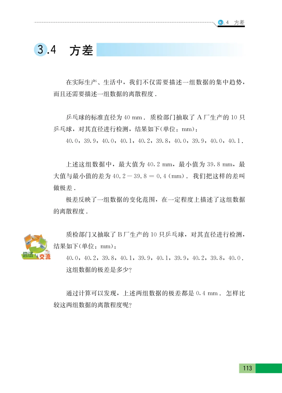 体会刻画数据离散程度的意义,会计算简单数据的离差平方和、方差。