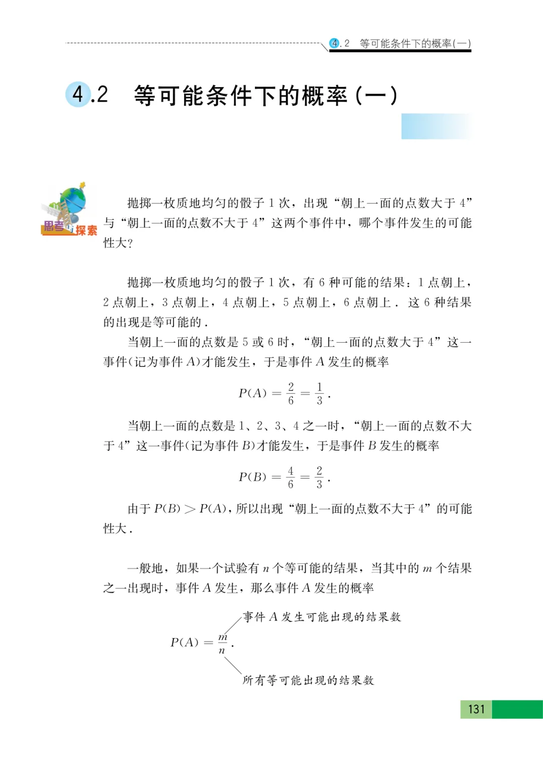 了解概率的意义,知道概率是对随机事件发生可能性大小的定量刻画。