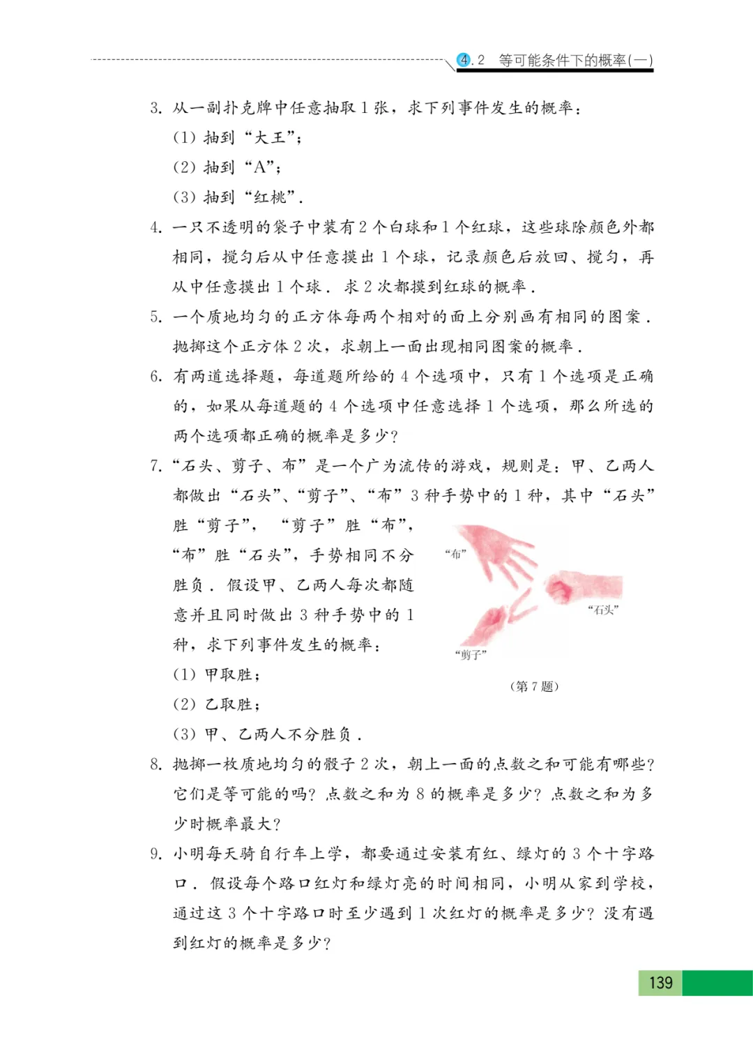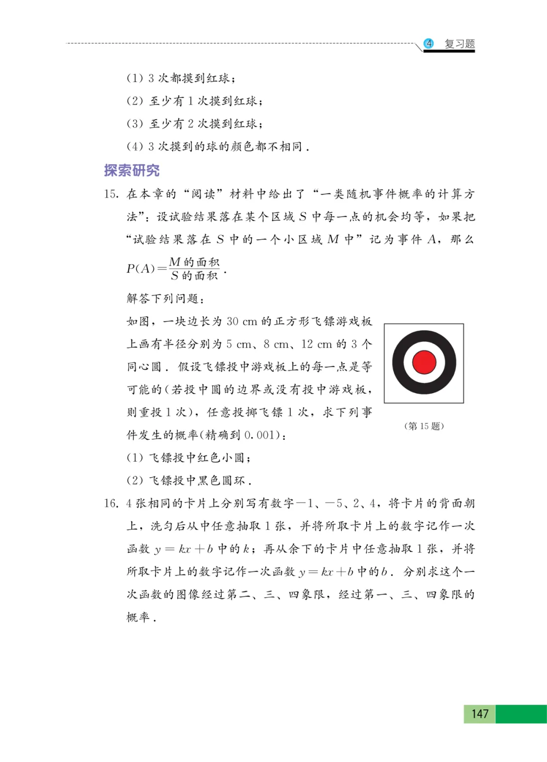 从“统计与概率”的学科难度和以往的南京市中考真题来看,“统计与概率”每年占据中考试卷的18分左右,属于典型的难度不大的必考题。学有余力的同学,完全可以在自主学习的基础上去探究一下历年的中考真题。虽然九年级的新书还没下来,但是有老教材作为参考,卜老师把老教材中的“数据的集中趋势和离散程度”、“等可能条件下的概率”放在这里,供同学们自主学习之用。相信同学们在学完八下的“数据的收集、整理与描述”、“认识概率”后,可以发扬“自我导向的学习者”的精神,顺利完成“统计与概率”的预习。