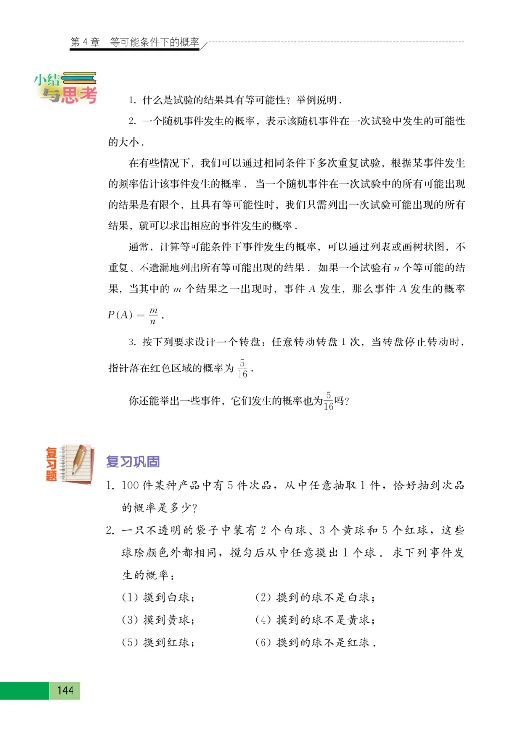 能计算简单等可能事件的概率,用频率估计概率,解决实际问题。