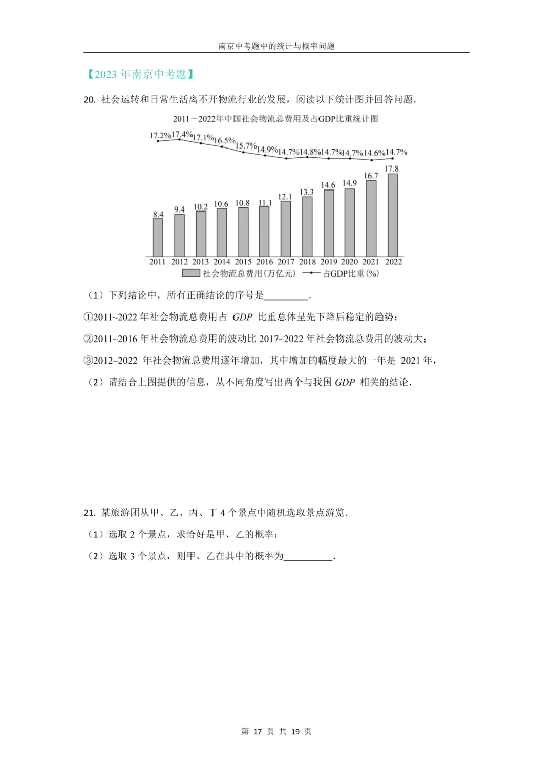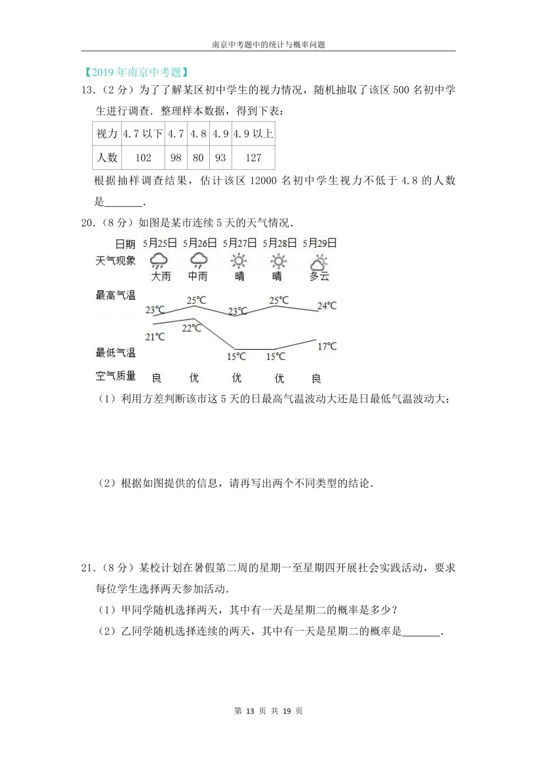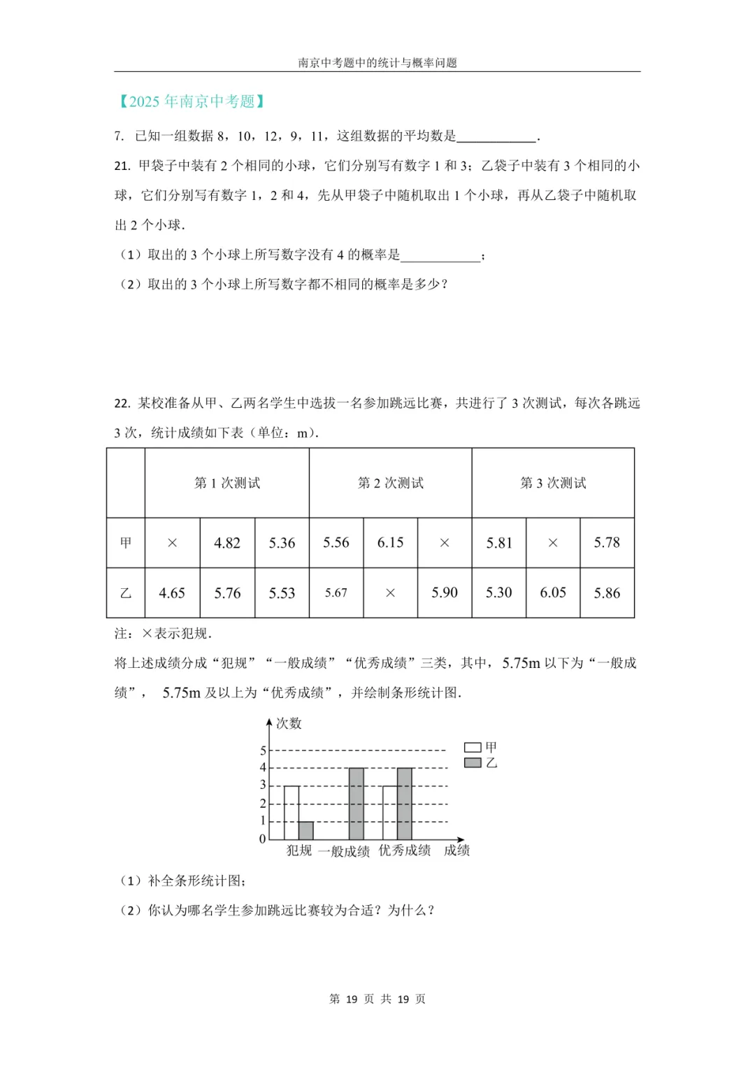 为了方便同学们感受中考中“统计与概率”的考题形式和难度,卜老师把2008年~2025年的南京中考真题进行了简单梳理,同学们可以踹一踹(have a try)。