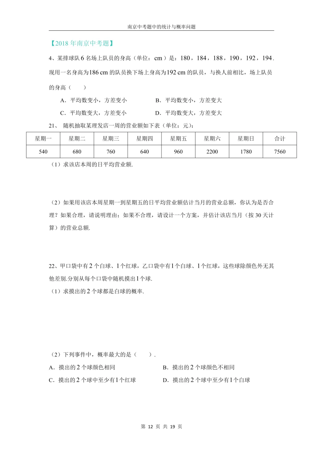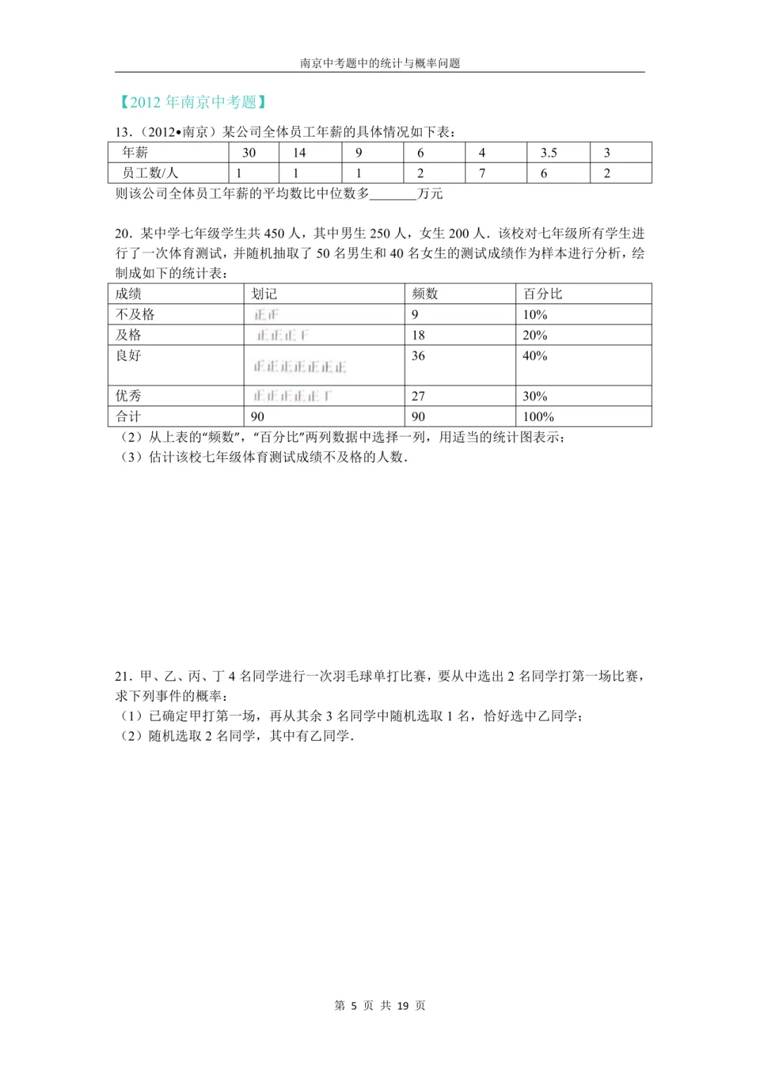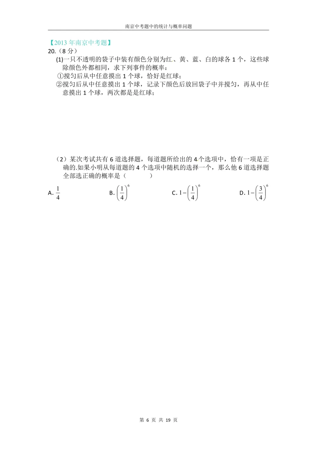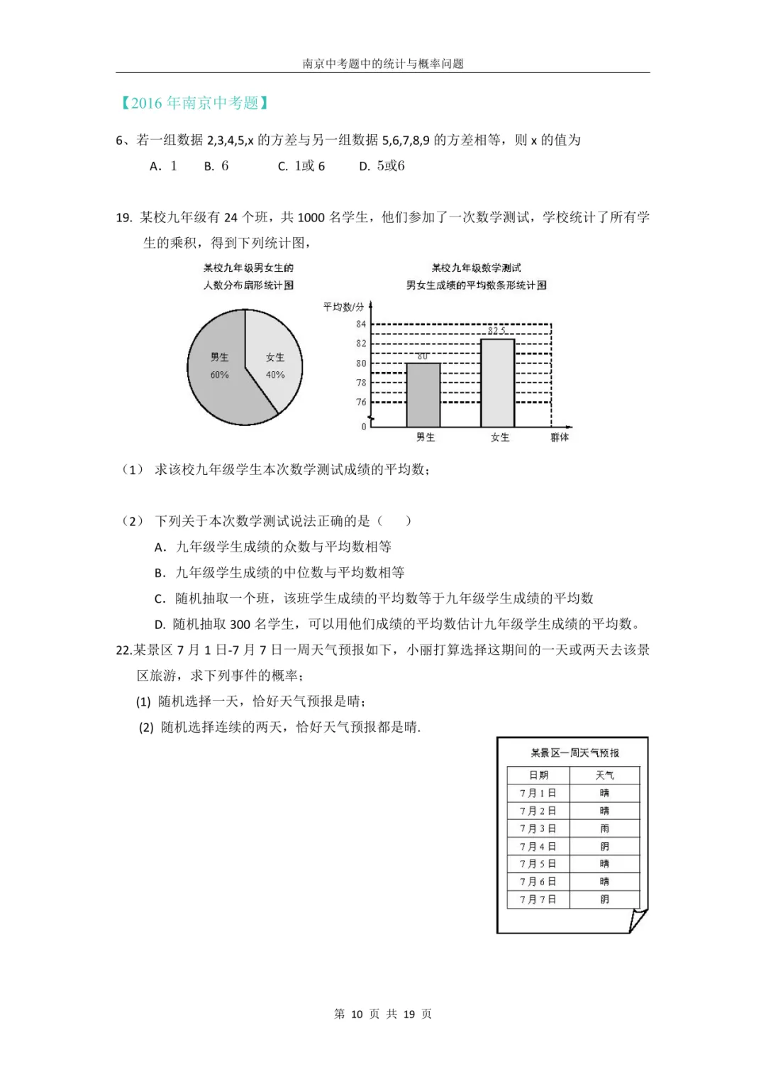 为了方便同学们感受中考中“统计与概率”的考题形式和难度,卜老师把2008年~2025年的南京中考真题进行了简单梳理,同学们可以踹一踹(have a try)。