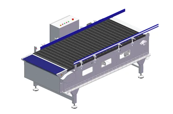 组成:主机:FRMB 300分道机。过渡方式:滚珠过渡板、电动滚筒组件、小节距链板过渡机。