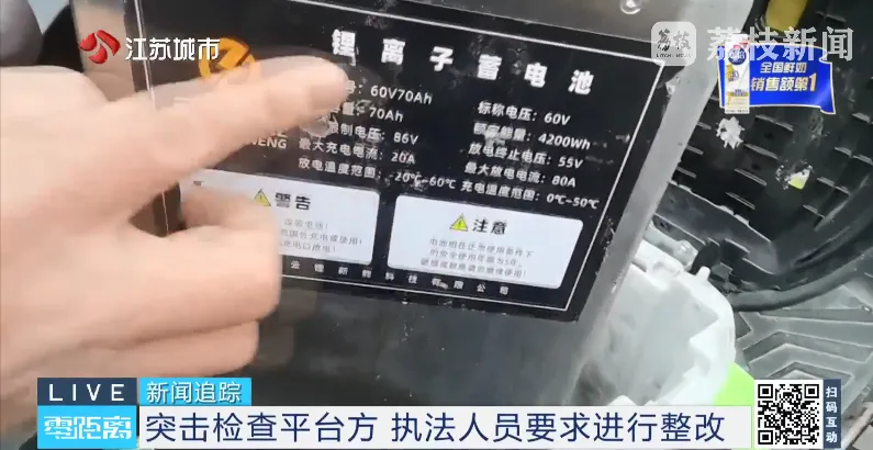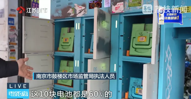 该换电柜由南京新能源集团设置,品牌为宁换电。很快,执法人员通知其相关负责人到现场接受调查。执法人员检查发现,柜子里提供的电池都是60V,超过标准规定的48伏要求。