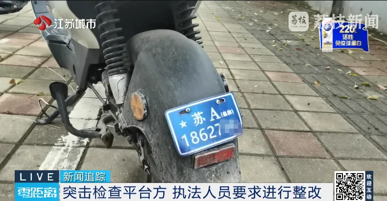 在建邺区第三家平台企业检查时,类似的问题依旧存在。电动自行车上挂着绿牌,实际真伪存疑,所有车辆的鞍座都不符合最新的要求。