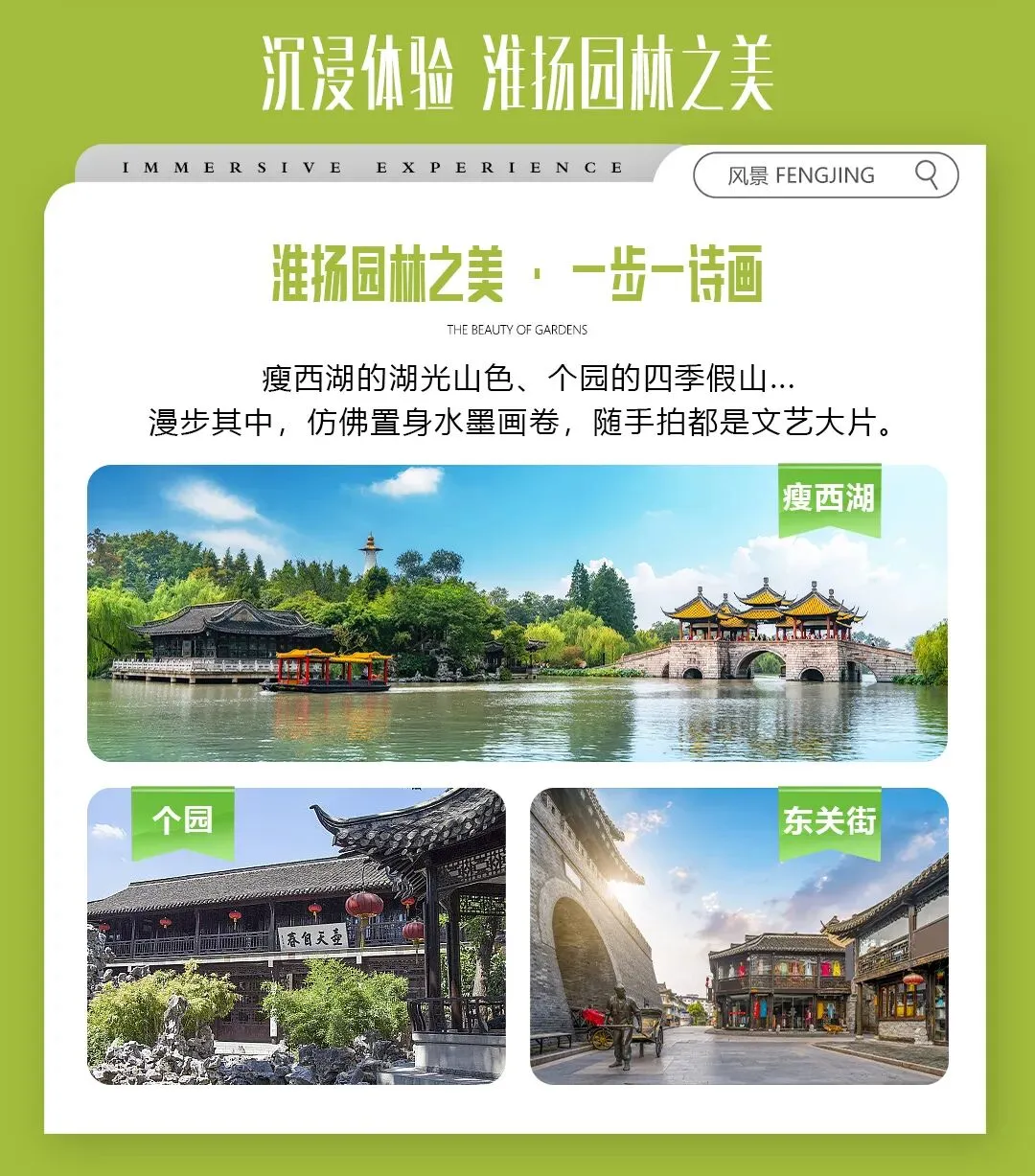 线路标签20人小团、观千秋粉黛表演、扬州早茶中吃、赠耳麦景交、无购物无自费、深度游、导游精讲、瘦西湖、牛首山、中山陵