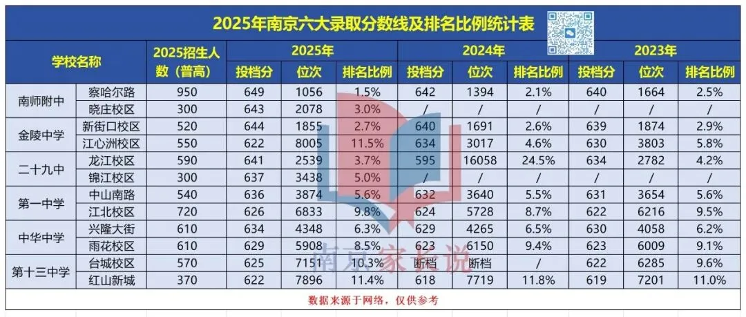 2025年,南京初中毕业生约6.9万人,其中原市区4.2万人。全市普通高中招生计划从2024年的42807人增加至47338人,净增4531人,增幅达10.6%。备受关注的“六大”高中(南师附中、金陵中学、南京一中、中华中学、二十九中、十三中)在去年扩招的基础上继续扩大招生规模,合计增加490个学位。
