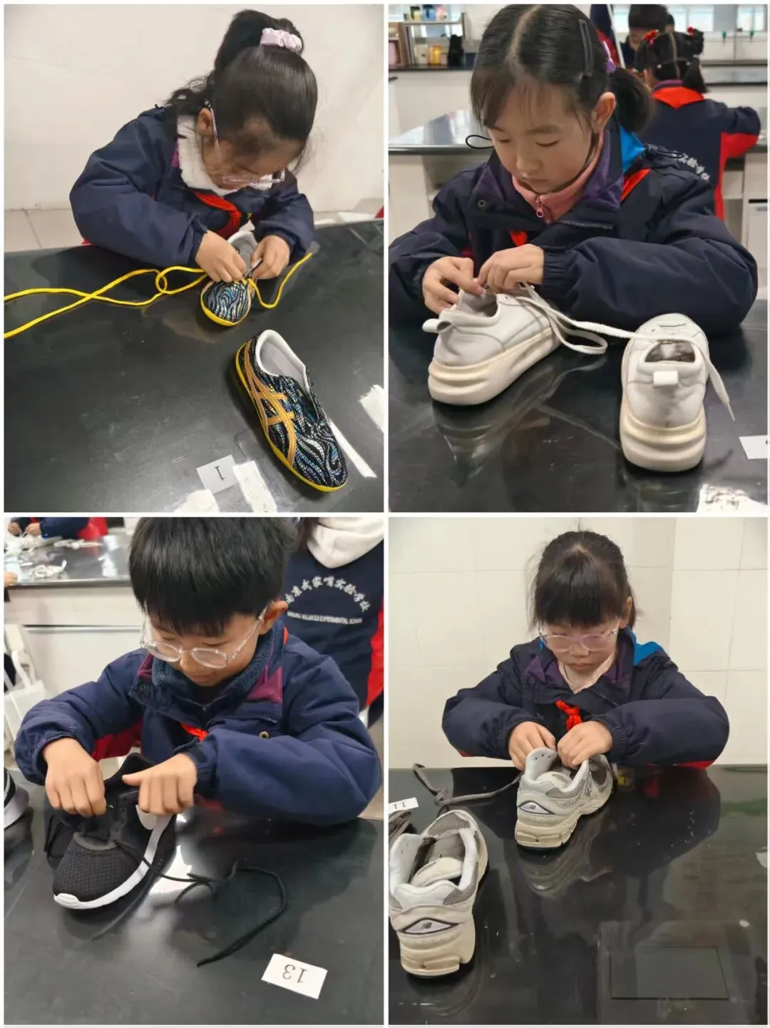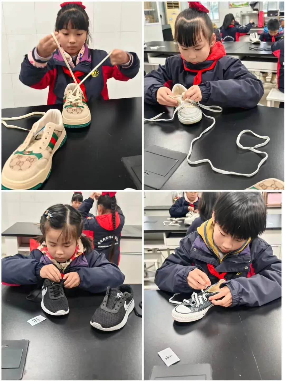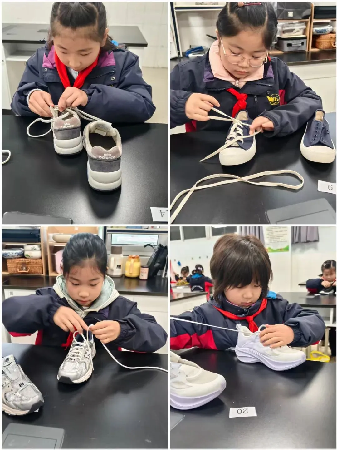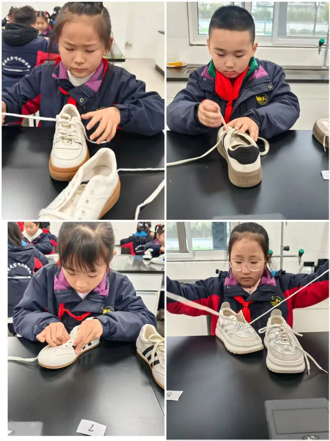 一声“开始”,小选手们拿出了自己的看家本领,一只只拿着鞋带的手在鞋子上飞快地穿梭,动作迅速而灵活小手灵活地缠绕着,流畅自如地系出一个个美丽的蝴蝶结。看到自己的丰硕战果,孩子们脸上绽放出自豪的笑容。教师将事先准备好的毛豆分发给大家,随着一声“开始!”,孩子们纷纷抓起一颗豆子,面带专注,开始了剥豆子的”旅程“。一片片豆壳在孩子们的双手中打开,展现出饱满的豆粒。娴熟的手法、专注的眼神,逐渐堆积的毛豆,孩子们谁也不甘落后,现场气氛异常的热烈。比赛结束了桌上的毛豆壳也收拾得干干净净。