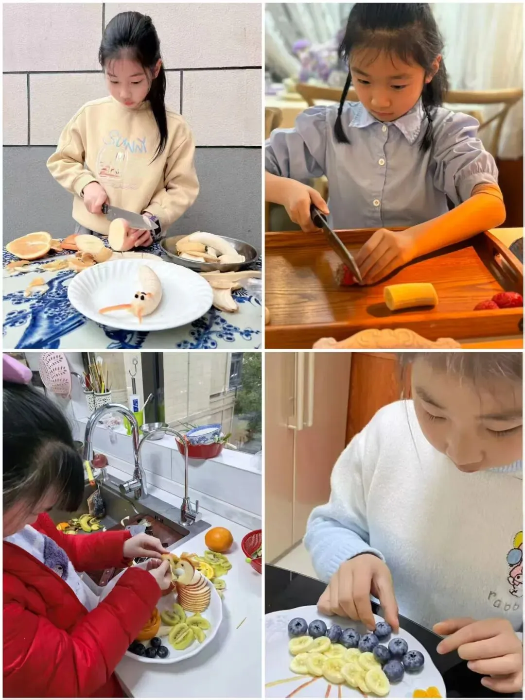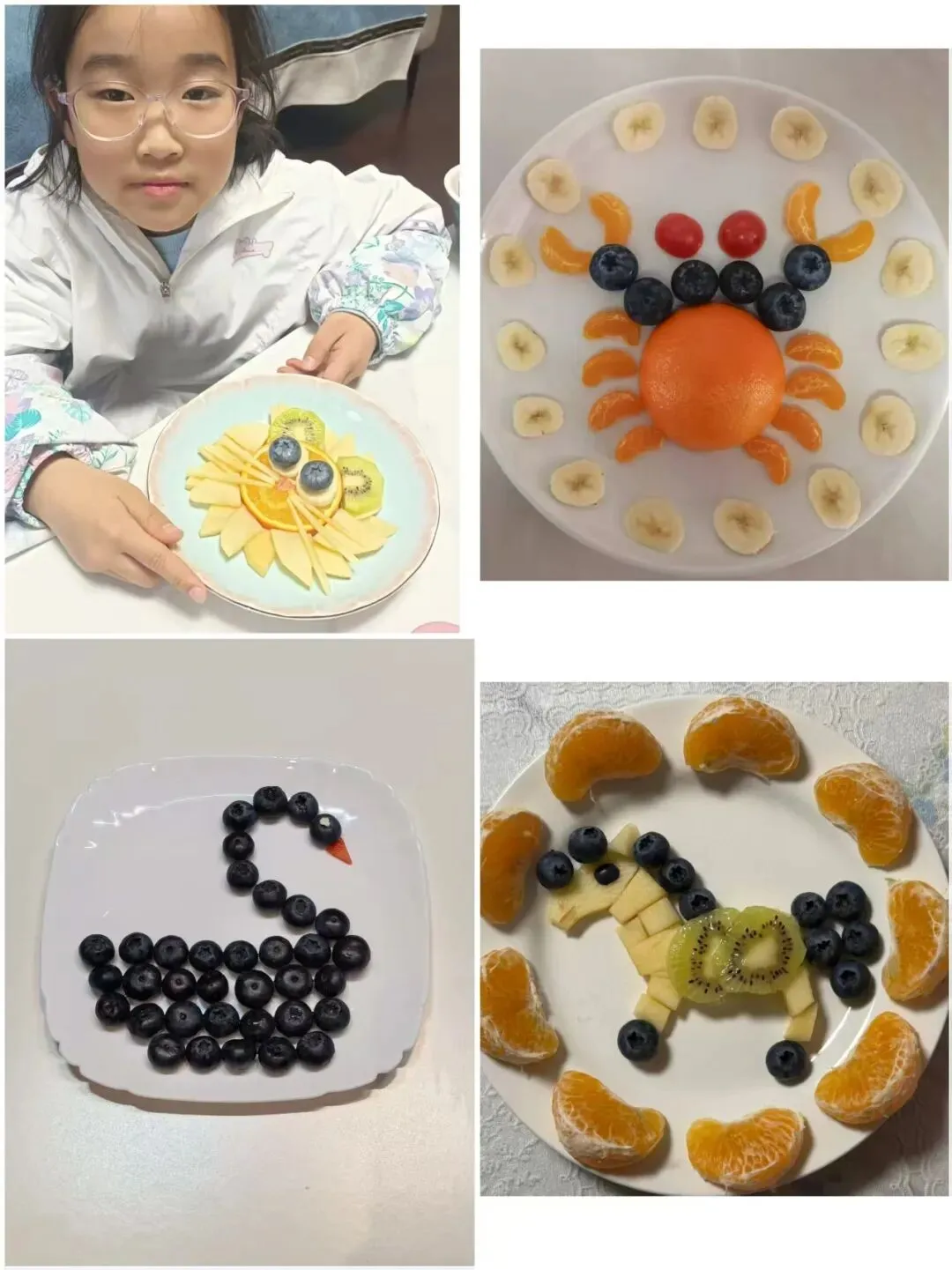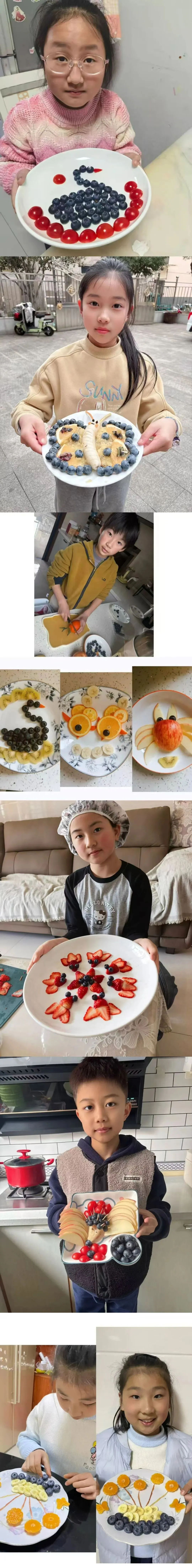 当水果遇上奇思妙想,小艺术家们化身“水果魔法师”用指尖雕琢出一个个灵动的造型:向阳的向日葵、优雅的天鹅、奔腾的小马,灵动的金鱼……色彩在盘中碰撞,创意在舌尖绽放,每一个造型都童趣满满、巧思十足,藏着孩子们最天真烂漫的小心思,也展现了他们积极参与劳动、乐于动手实践的可爱模样。