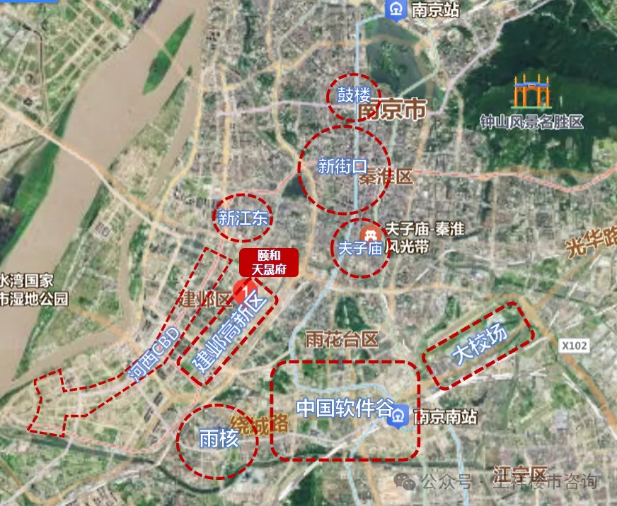 从地理位置全局来看,颐和·天晟府不仅位于河西中部,稳占河西CBD、新城科技园的核心资源,又距离秦淮、鼓楼、玄武等核心城区非常近,处于南京新街口“城市原点”与河西“新中心”之间的黄金位置,两边的资源都可以为我所用。