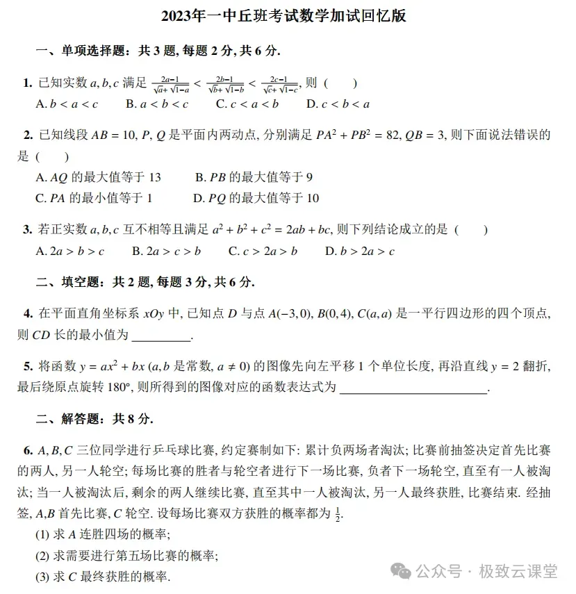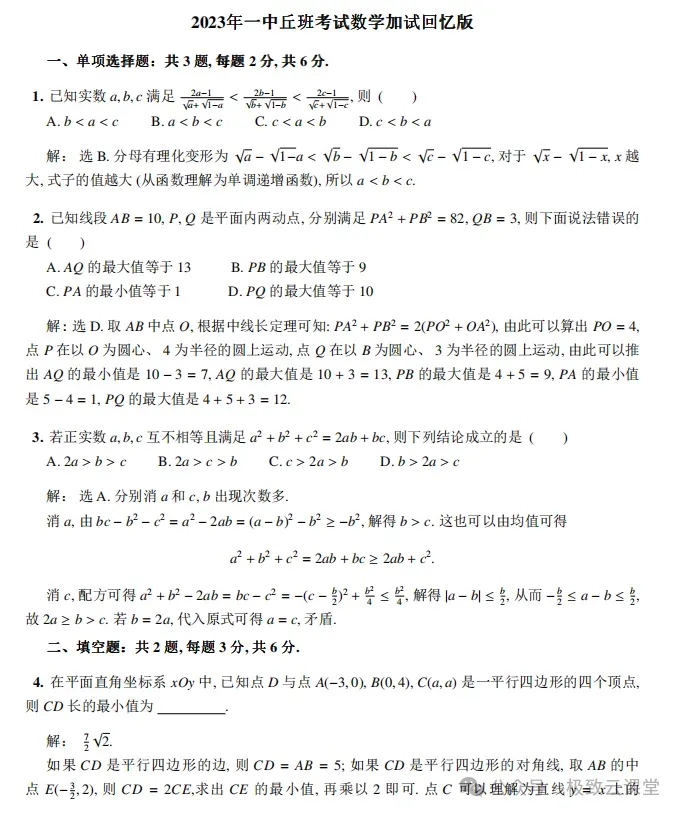 >2023年南京一中数学特长生丘班考试真题+答案解析
