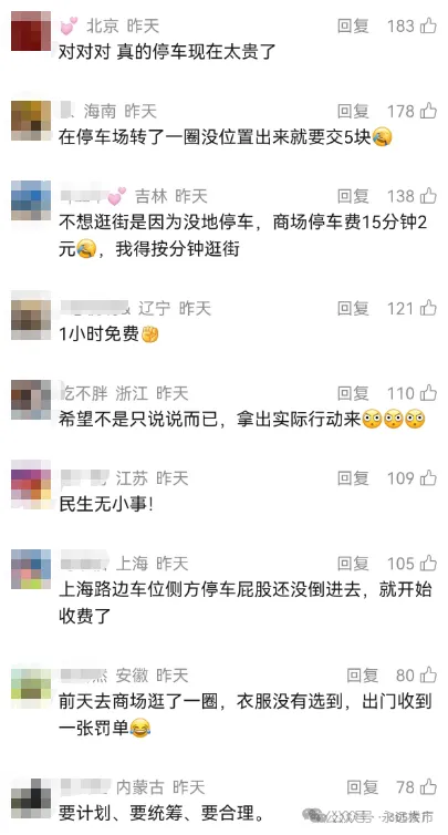 对此,网友热评不断,直言:早就该降了!“停车现在太贵了”、“不是不想去逛街,是停车费让我得按分钟逛街”......