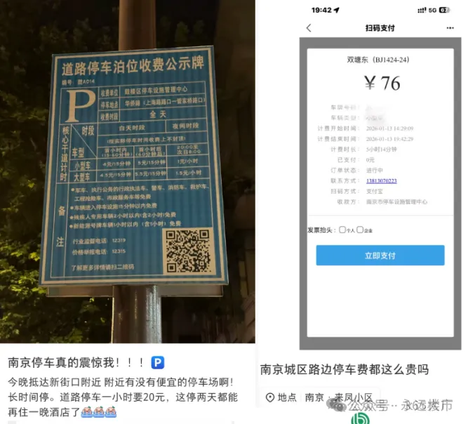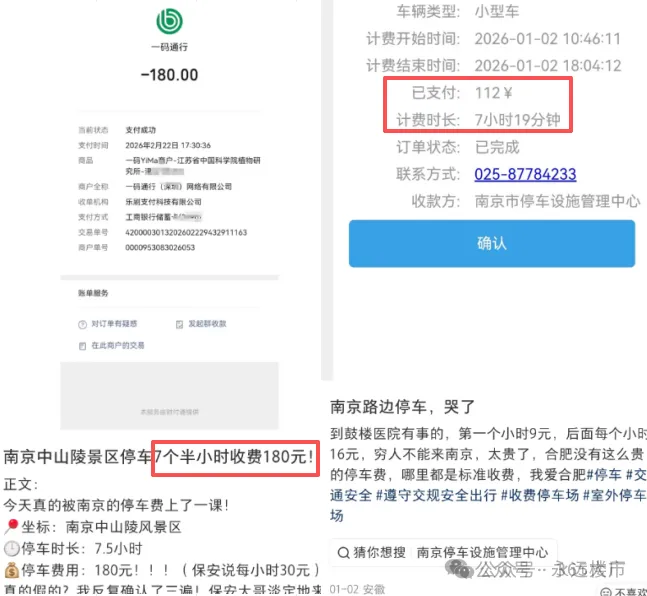 前不久,就有网友发文称自己在南京中山陵景区停车7个半小时,收费180元,每小时30元。此外,市中心很多路段的停车费也高达20元/小时。