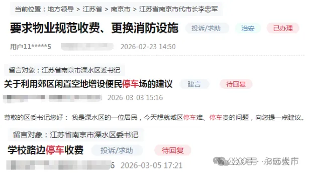 在官方留言板平台,针对小区停车费问题,网友们的咨询和建议也非常多。