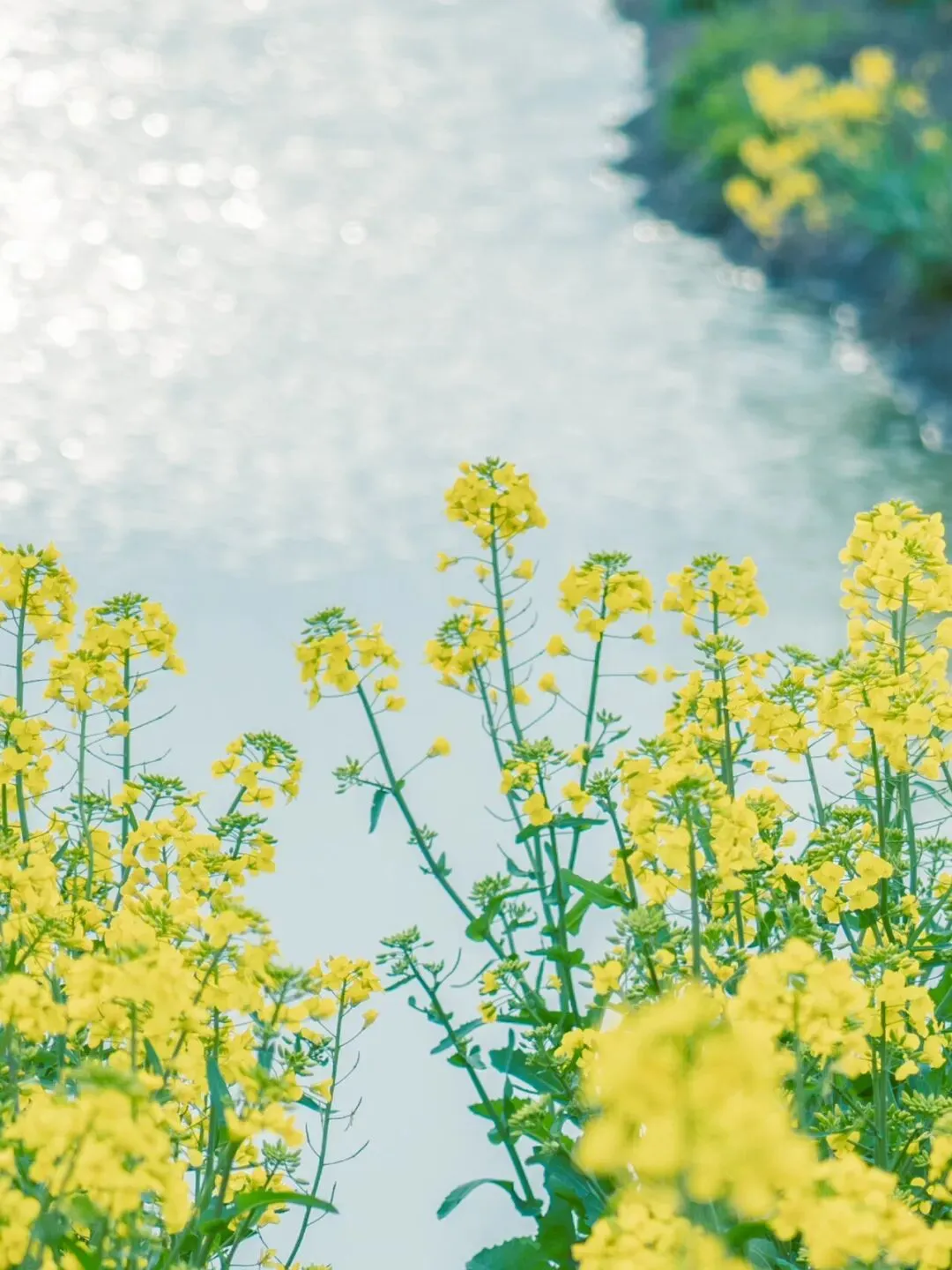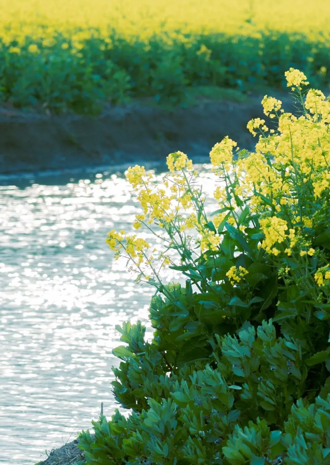 春日阳光下,田野里的各种青翠,衬托着油菜花特有的绿和黄,绿得有点晃眼,黄得有点夸张。远看,一片片金色的海洋;近嗅,一阵阵淡淡的清香。