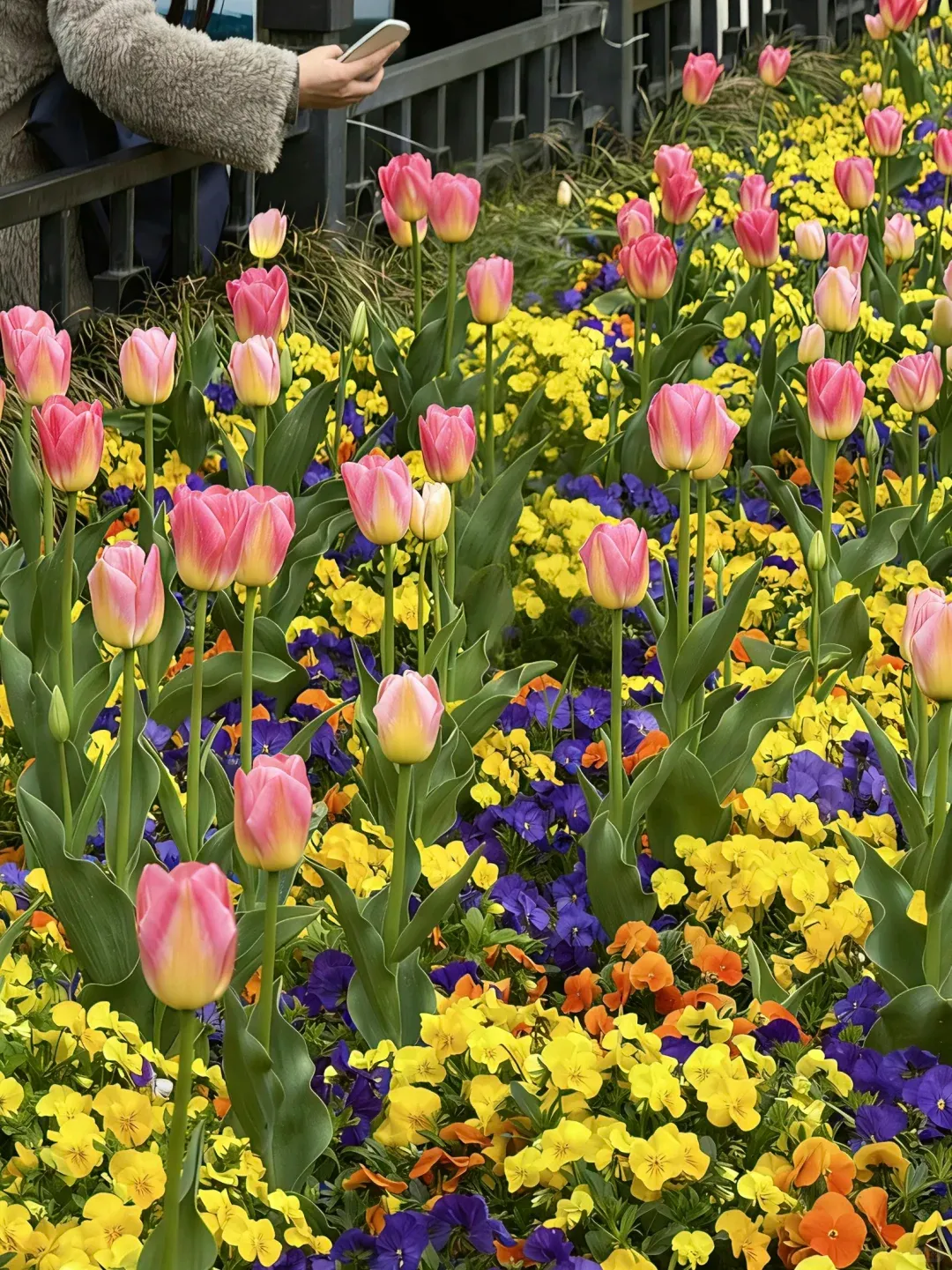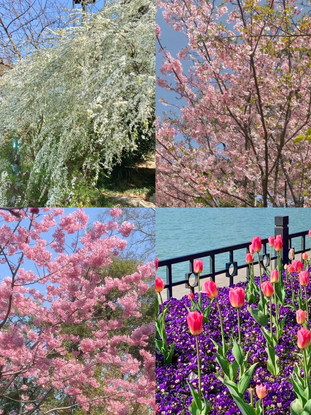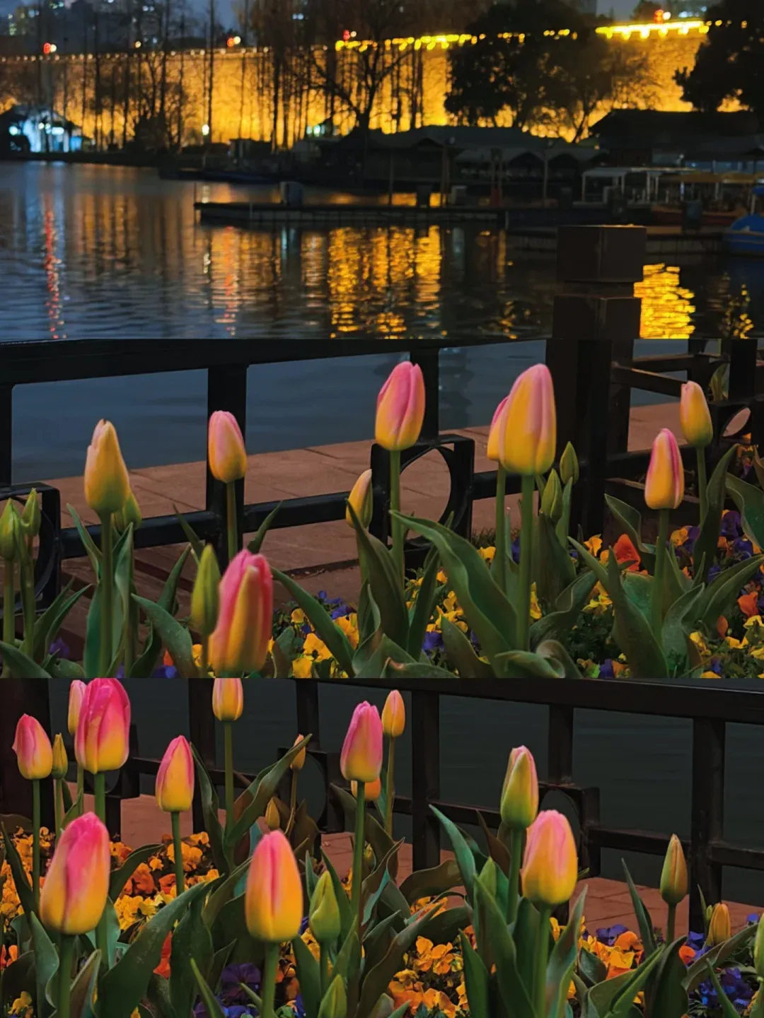 赏花季开始了啦,玄武湖的花开了,郁金香就在进门一直的右侧湖边道路两旁的郁金香花丛像油画, 还有开得正旺的梅花和樱花, 阴天拍已经很好看了,晴天肯定更好看白天阳光洒在郁金香上,整片花海色彩透亮,各种品种、各种颜色开得热烈又治愈,怎么拍都好看。