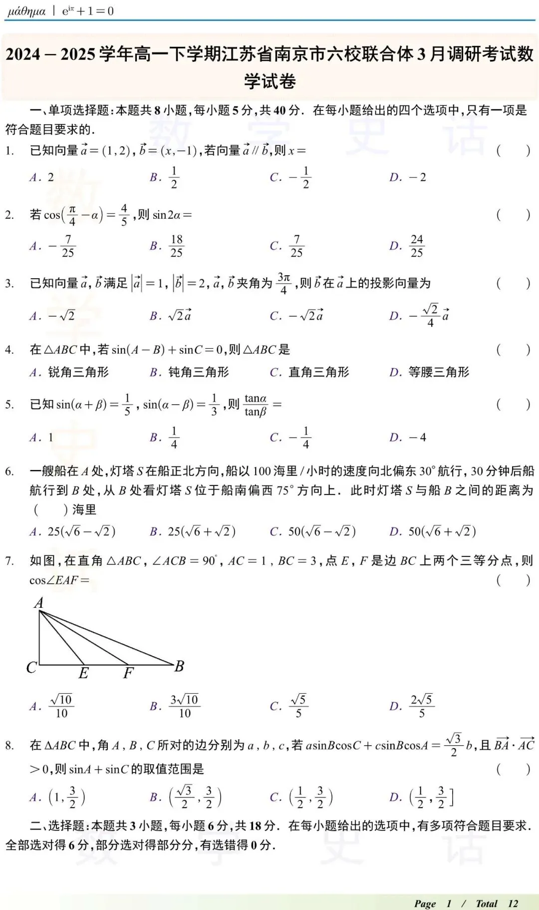 1.高一数学试卷(持续更新中)