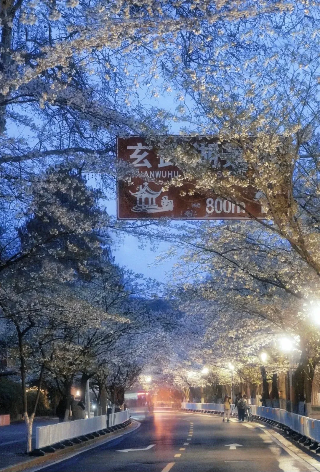 真心建议大家别赶白天暴晒的时段,下午5点后到入夜的蓝调时刻,才是南京樱花的颜值巅峰。
