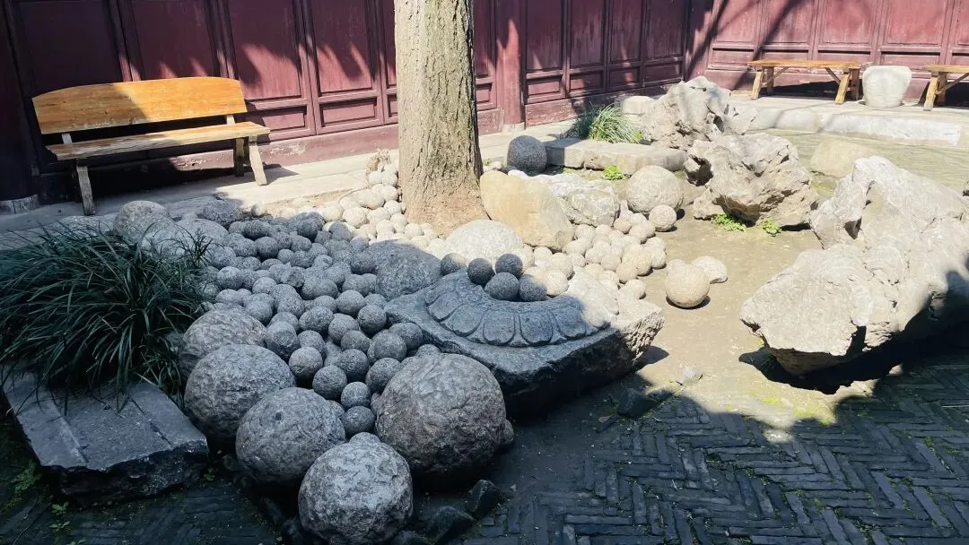 展馆中间的庭院中散落着石制的大小炮弹。太平天国初期的理想也是历史的必然,在参观科举博物馆时也了解到象黄巢和洪秀全都是屡试不第最后选择了造反这条路,如果他们科考成功的话历史也许会有所不同吧,但也许也会有其他不中的人同样选择造反呢。太平天国后期内部倾轧,争权夺利,洪秀全在夺得南京后造王府享乐到死,大权旁落,引发天京事变,最后是儿子替代他去北京凌迟处死。