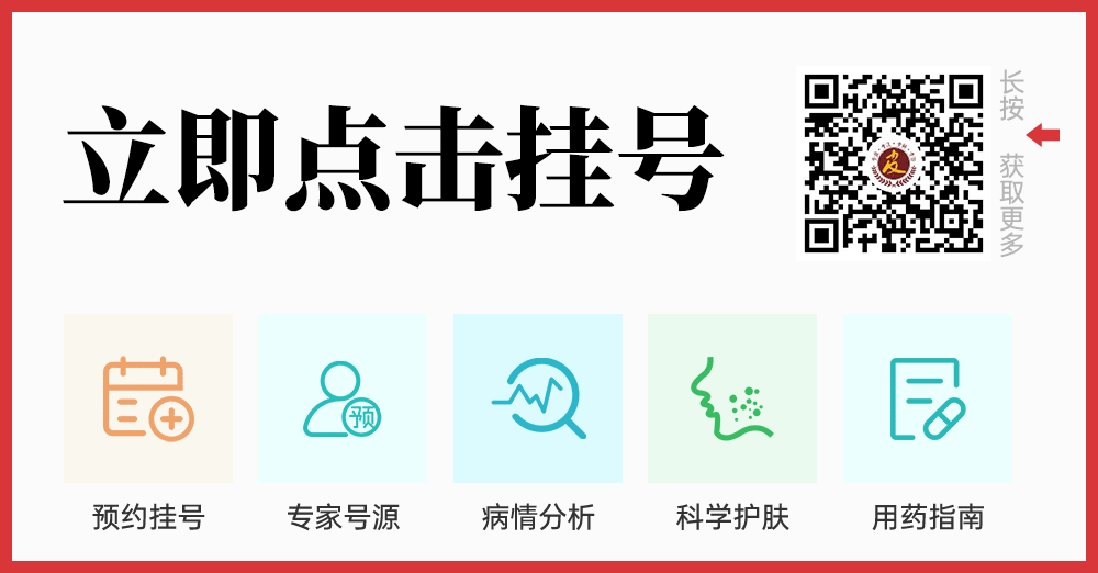 有皮肤问题可点击结尾“阅读原文"在线咨询预约挂号,也可点击下方图片一键挂号!