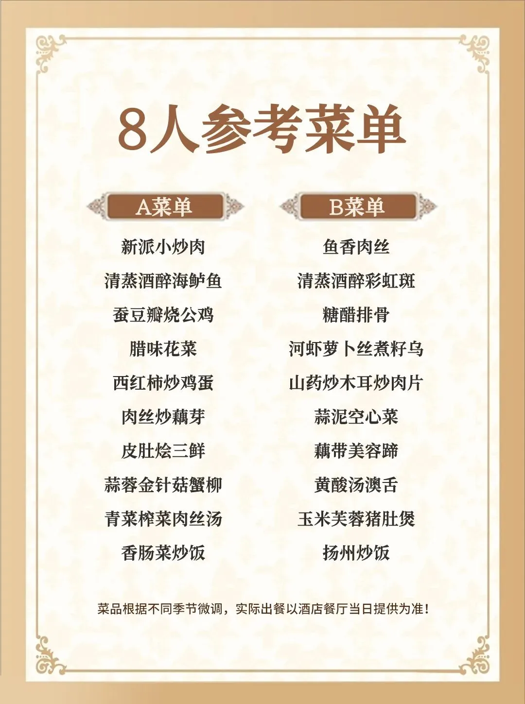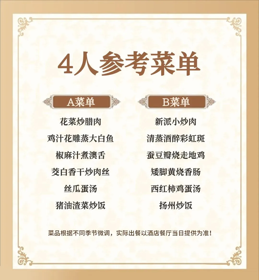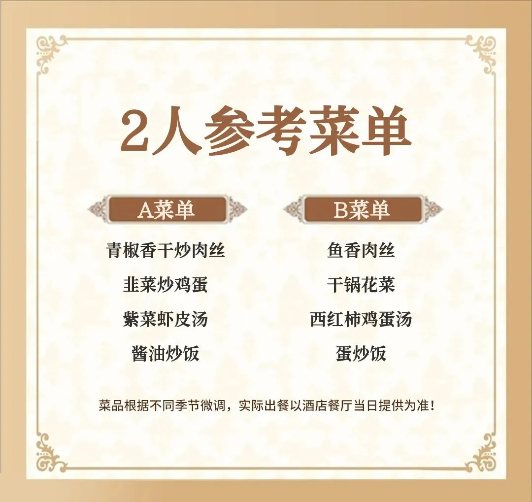 7.本套餐为桌餐,根据人数增加或者减少菜肴!餐和住宿为打包价格,不用不退本链接餐单仅供参考具体以当天到店为准!
